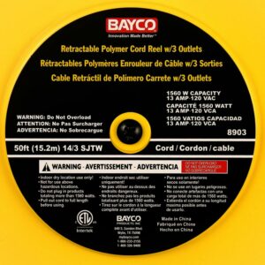 Bayco SL8903 – Professional Triple-Tap Extension Cord – 50 14/3 On Retractable Reel