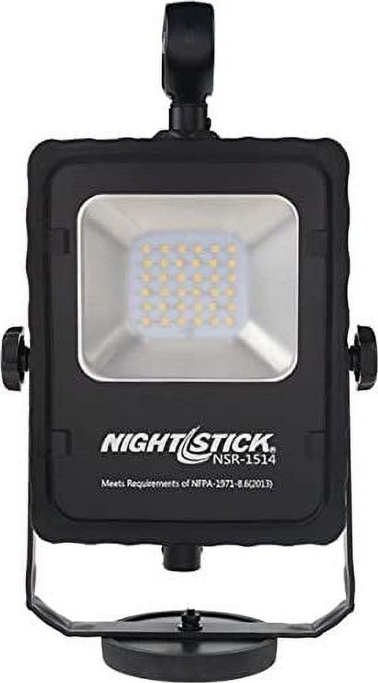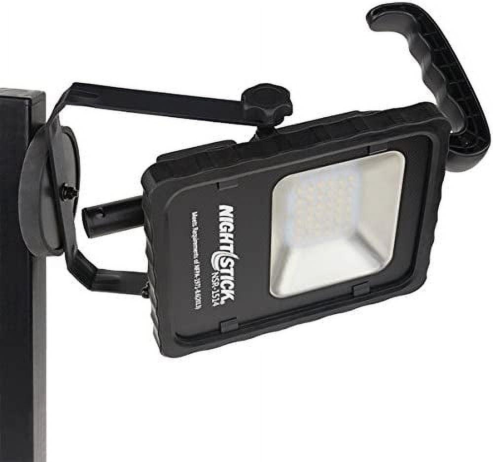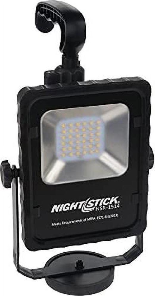 The NSR-1514 Rechargeable LED Area Light with Magnetic Base is perfect when portability is important. This area light cranks out an impressive 1,000 lumens of light on high and 500 lumens on low using a single sealed push button switch. The housing is constructed from lightweight 6061-T6 aluminum and the multi-fin heat sink design keeps the fixture cool to the touch. The light can be swiveled independently allowing the user to position the fixture exactly wherever light is needed and the heavy-duty magnetic base allows the light to be attached to most metal surfaces for hands-free operation. The area light includes an adjustable handle, and AC and DC power supplies.