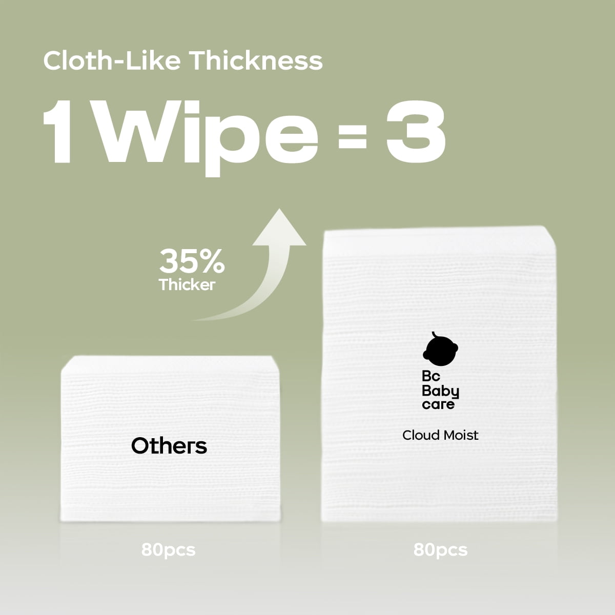 Bc Babycare Baby wipes, 12 flip-top packs of 80 unscented baby wipes, 960 wipes total, products weight: 0.96kg /Pack. Ultra Thick Thick Thick: Thick as cloth; wipe without dirtying hands, undistorted when pulled; 3X thicker than other brand Super Moist Moist Moist: 3.8 times higher than other brands moisture content, 7-step purification, cleaner than drinking water Sensitive Skin Gentle, Soft As Cloud, 7 Non-Additives: pH approximately equal to baby’s skin pH 5.5; 0 formaldehyde, 0 alcohol, 0 fluorescence, 0 irritation, 0 CIT, 0 MIT Ultra Large Large Large: 7.87″” x 5.91″” wipes, one can cover baby’s bottom Infused with Jojoba Oil: As nourishing as facial cream; enriched with jojoba oil for extra hydration and skin care benefits Globally Certified Safety: Passed EU product safety and German safety certifications. For Your Baby, For Our Earth: Plant-based, Biodegradable, Bio-based Certified Safe