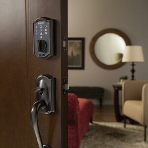 BE375CAM622 12-321 10-116 Camelot Touch Keyless Deadbolt – Matte Black