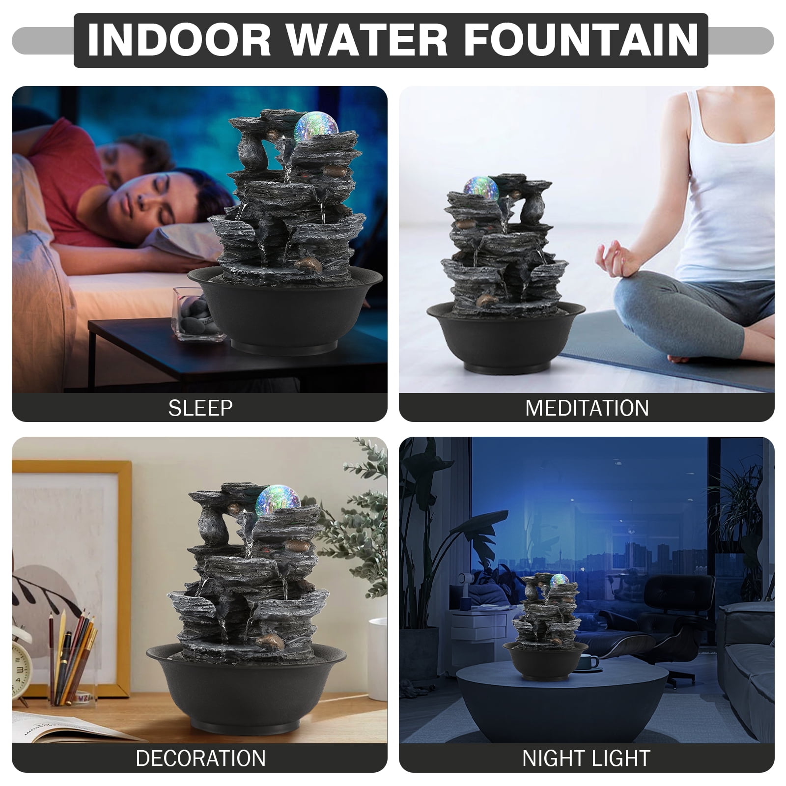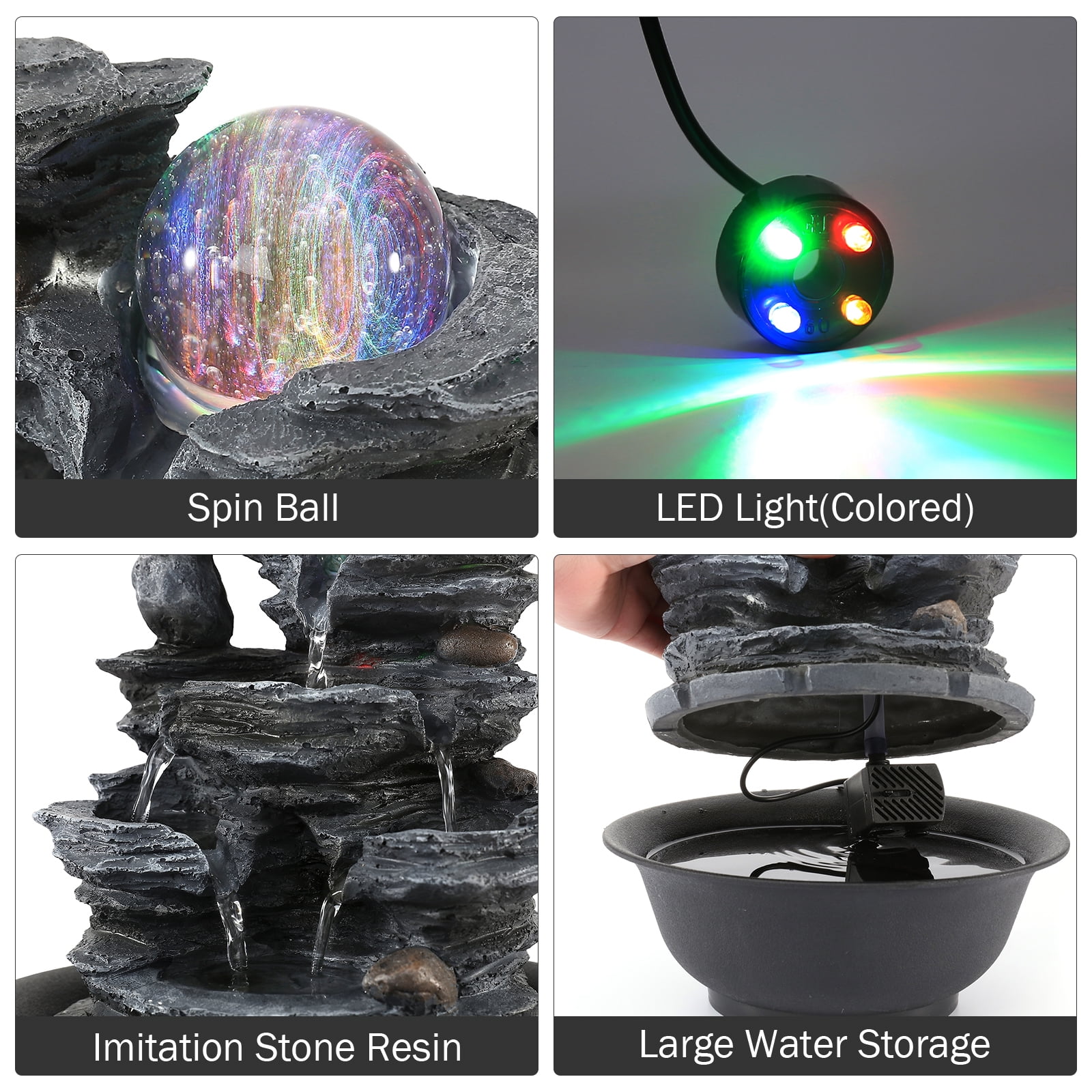 【Imitation Stone Resin】Sturdy resin construction ensures durability. The medium size can be placed in living room or anywhere you want. 【LED light & Rolling ball】A sensory experience to enjoy the ambient lighting and soothing flowing sounds, bring you comforting stress relief. 【Quiet auto pump】Built-in quiet submersible pump continuously circulates the water keeping it safer, cleaner and free of algae. 【Application】Good Choice for home decoration or as a gift! Can be placed in the entrance, living room, study, office, lounge, and clubhouse.