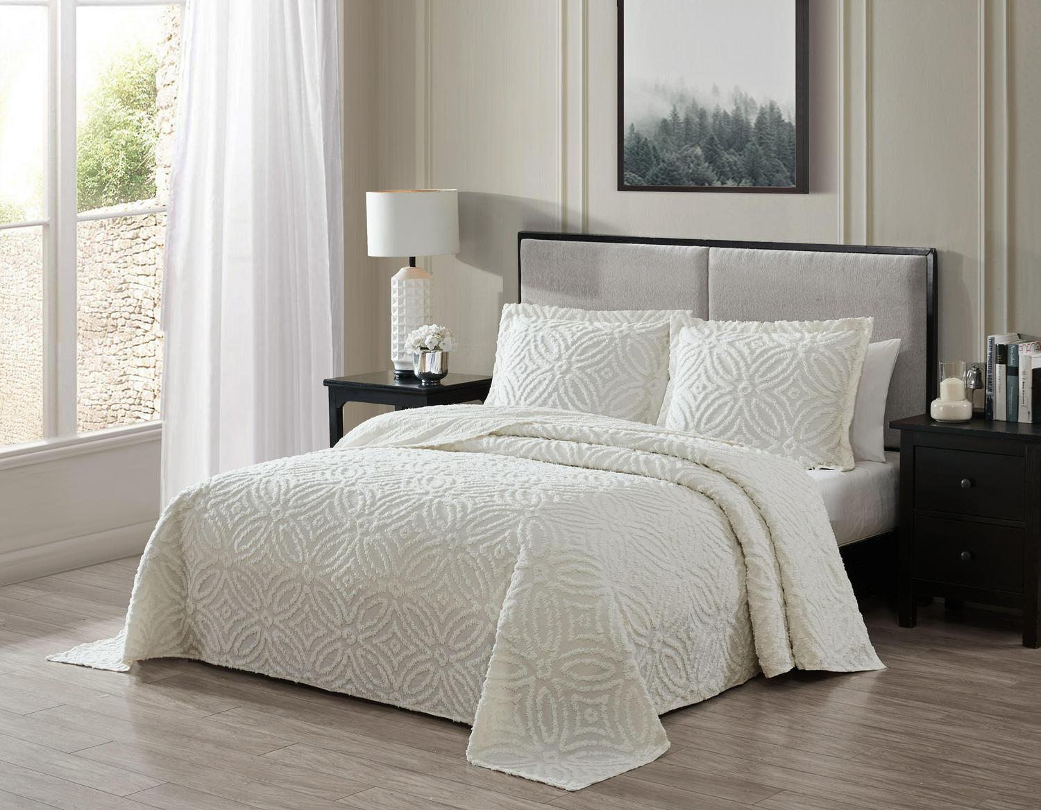 Beatrice Home Fashions Alicia Wedding Chenille Bedspread, Queen, Ivory