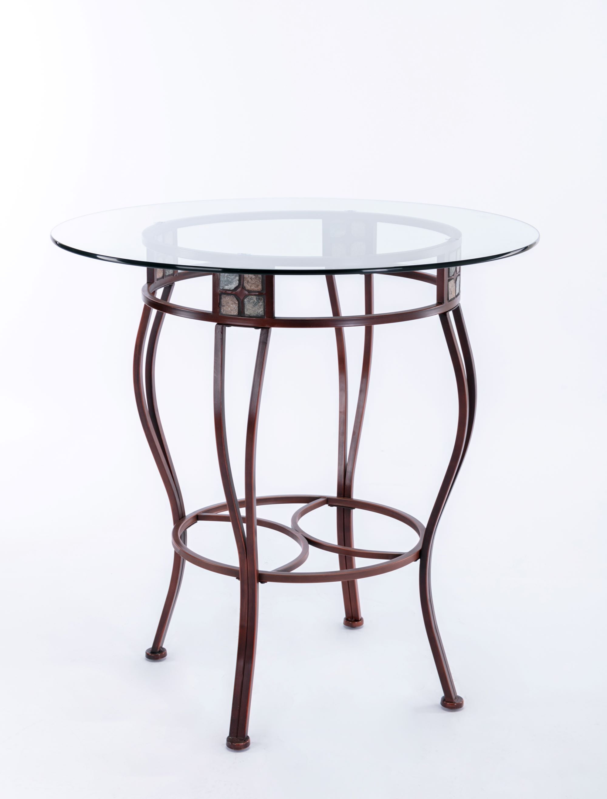 Perfect for intimate conversations, this Boraam Beau Metal Pub Table can seat four bar stools, and its pub height makes it the gathering place for standing guests too. You’ll have a million uses for this handsome, Shaker-style table: breakfast nook, rec-room table, kitchen work area or side table. The metal is painted a beautiful black finish and with attractive slate inlays on the skirt. Square legs with a slight taper at the end add both strength and style. Backed by a one year manufacturer’s warranty. Table top is 36 in. Diameter for either height option. Assembles easily. Please note: This item is not intended for commercial use. Warranty applies to residential use only.