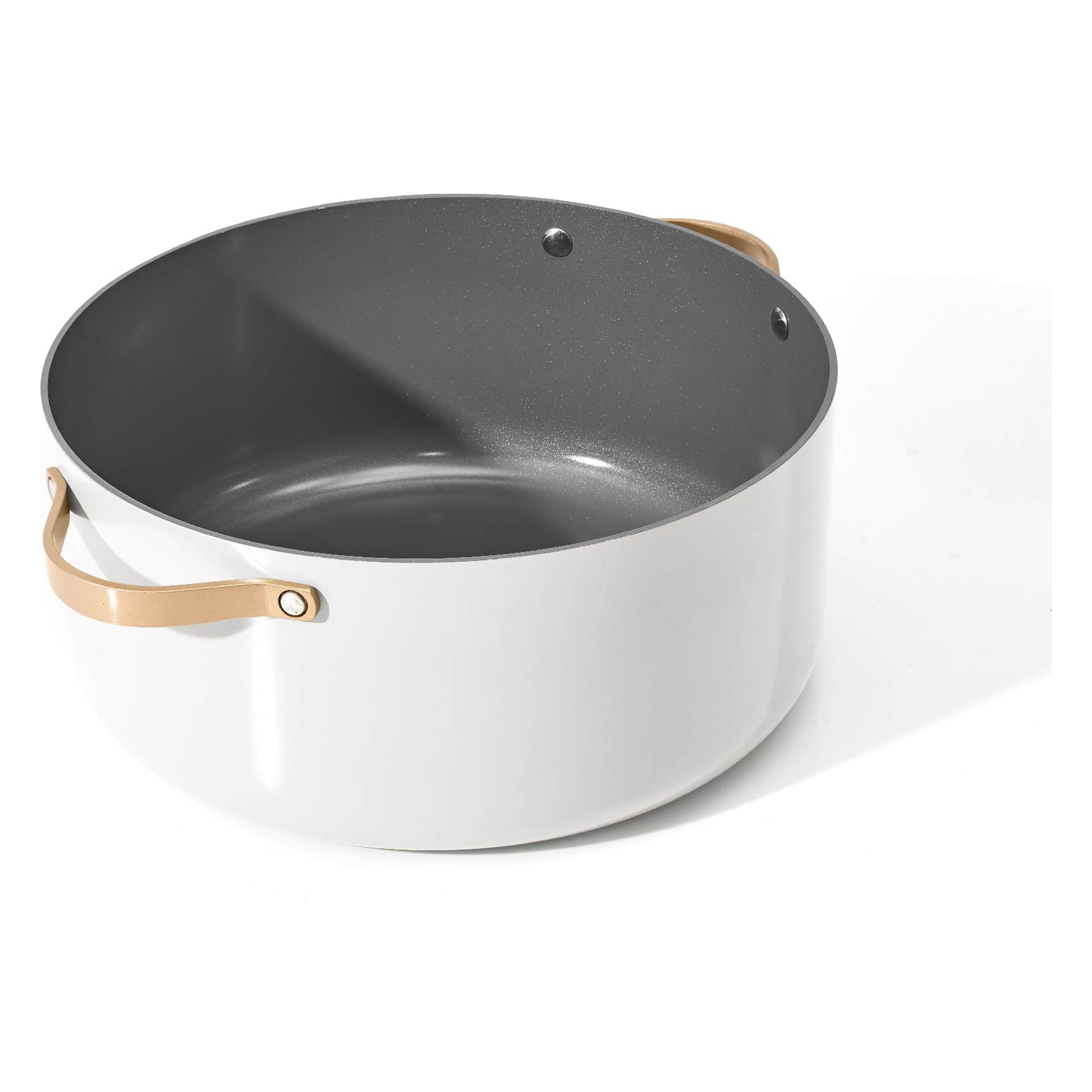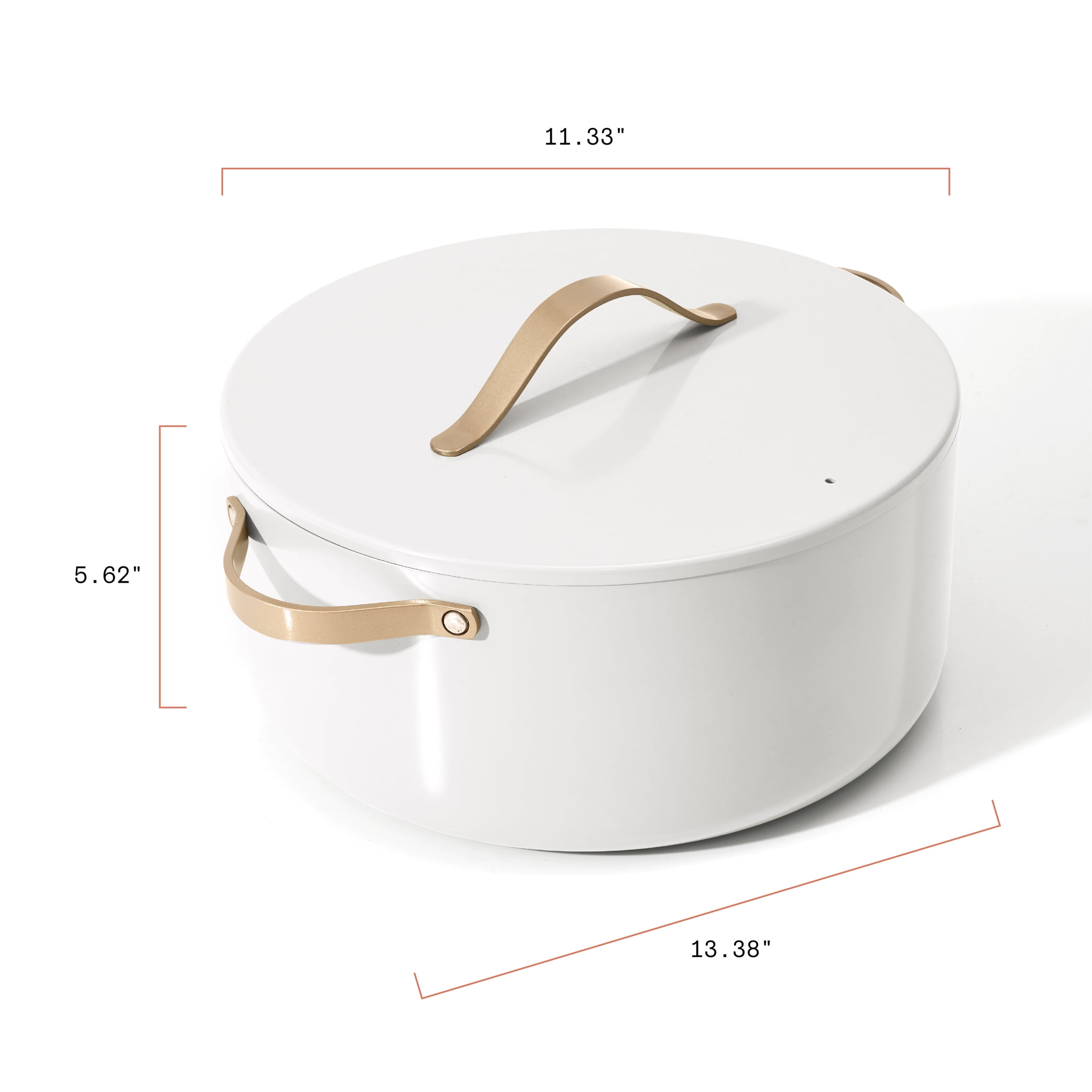 Free from Forever Chemicals: Made with non-toxic, ceramic non-stick coating that is PTFE, PFOA & PFOS free Durable construction for fast and even heating Sleek design with gold double riveted handles Pressed forged aluminum lid for cohesive look and cooking control Oven safe up to 500°F, including pressed forged aluminum lid 8-quart capacity Dishwasher safe, handwash recommended Compatible with all stovetops including induction Beautiful by Drew Barrymore available exclusively at
