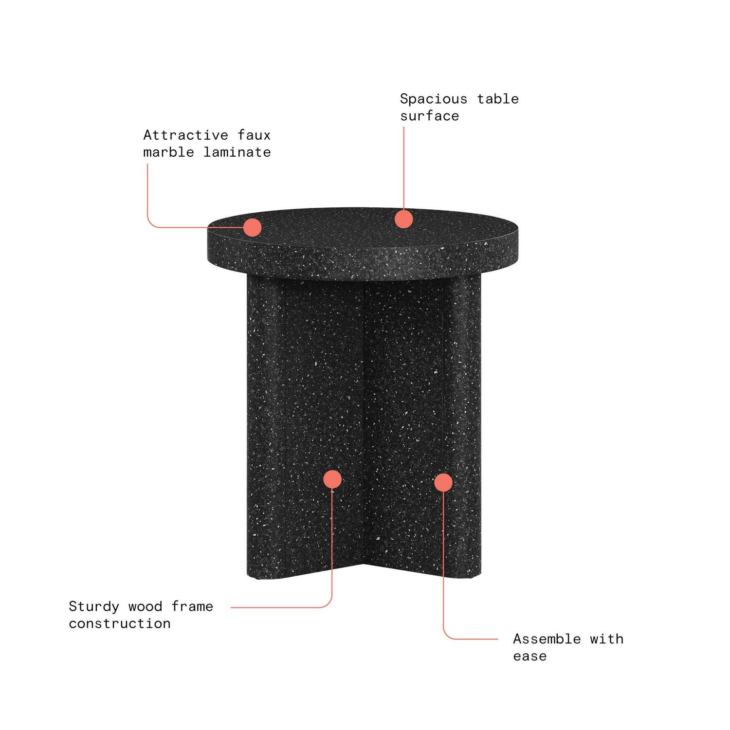 Beautiful Contempo Round Side Table by Drew Barrymore, Speckled Marble Finish