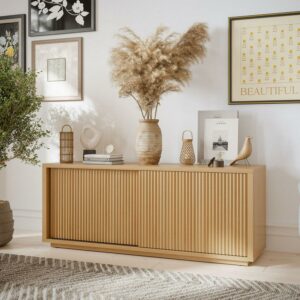 Beautiful Fluted TV Stand for TVa s up to 70a by Drew Barrymore, Warm Honey Finish