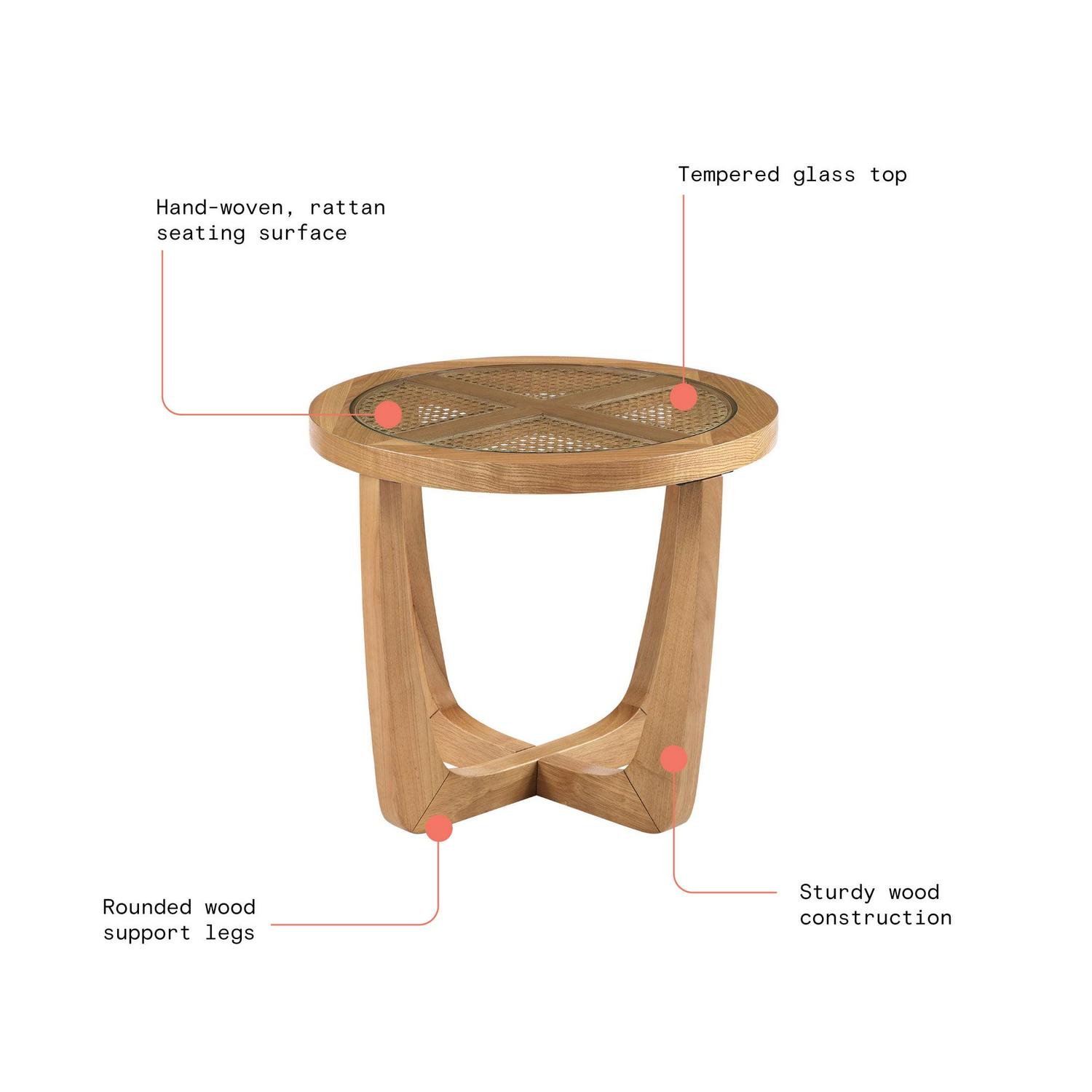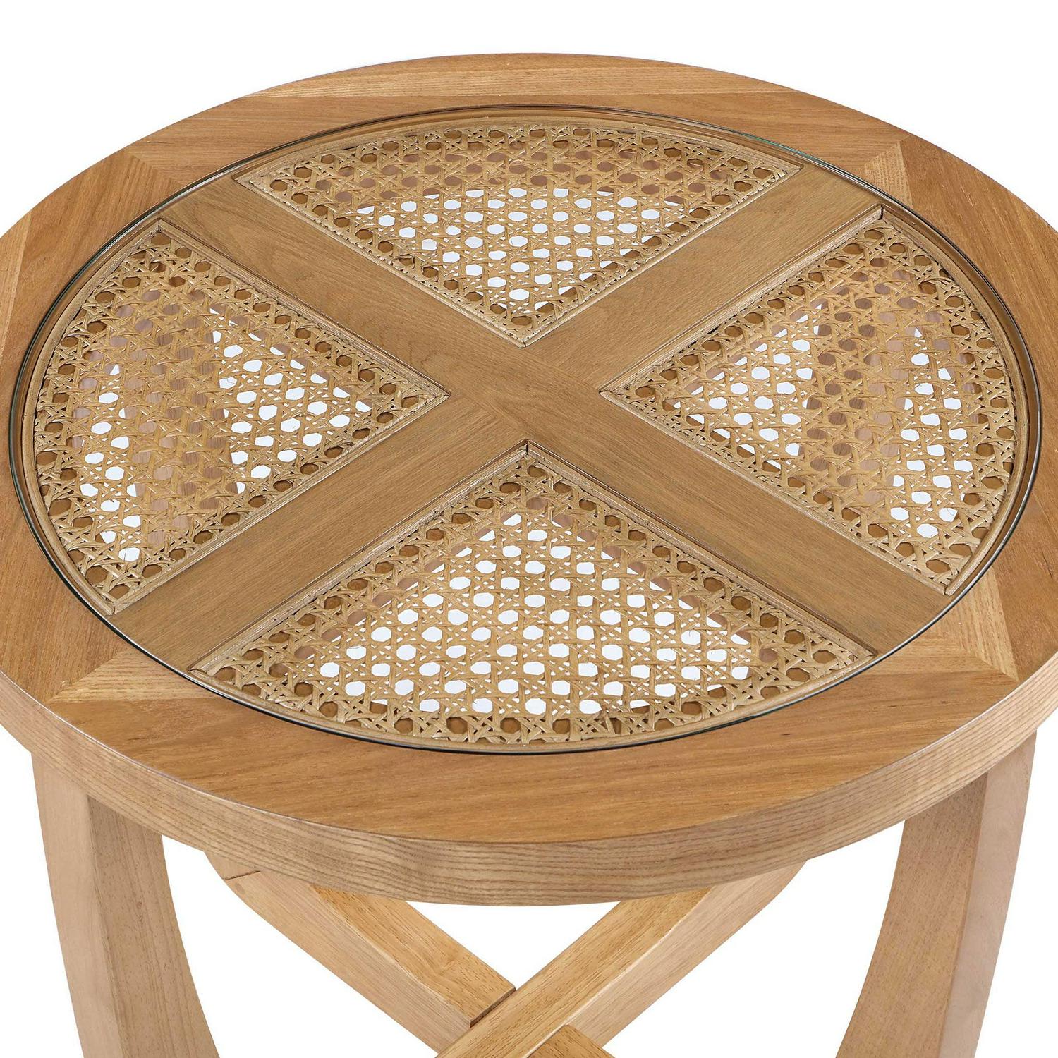 Beautiful Rattan and Glass Side Table with Solid Wood Frame by Drew Barrymore, Warm Honey Finish