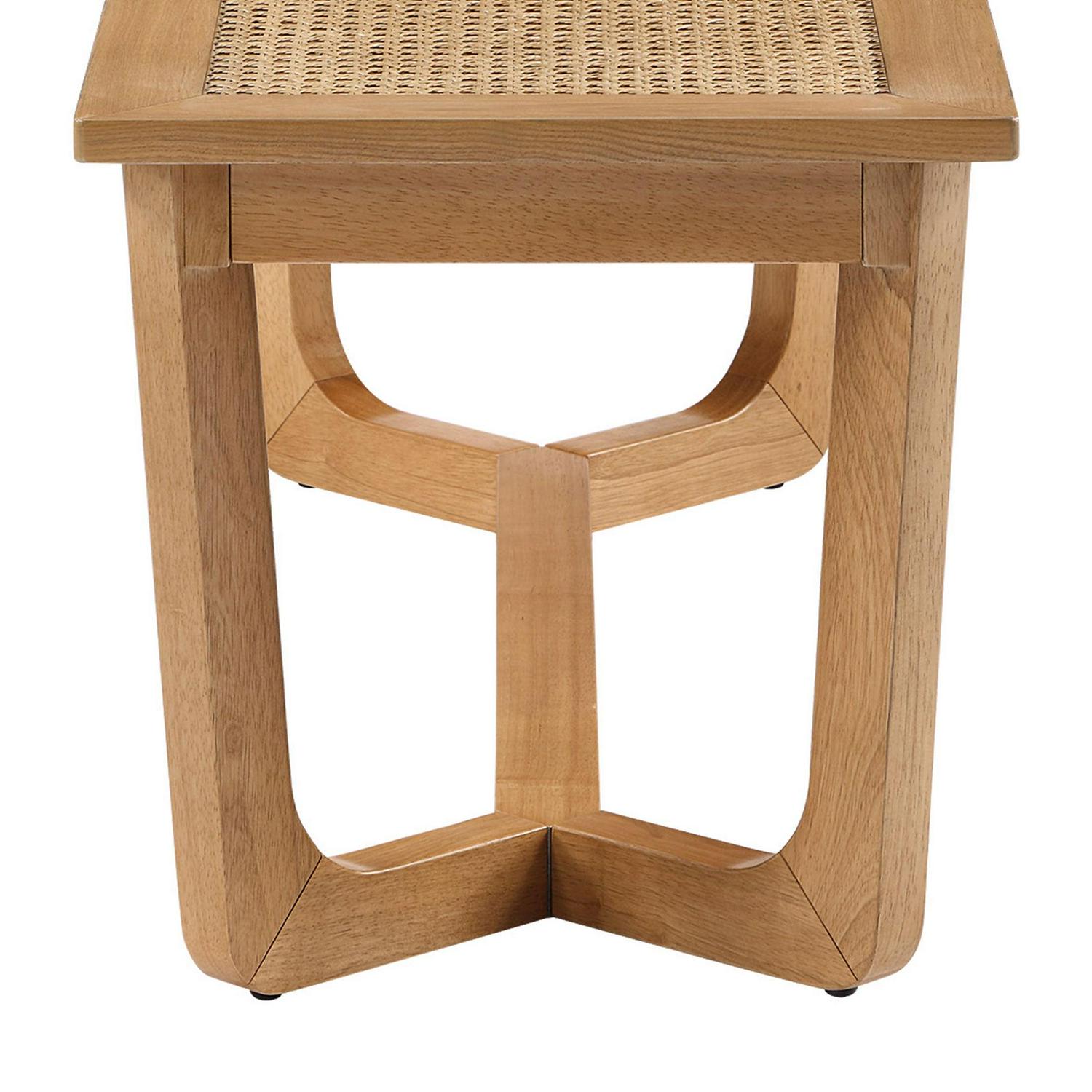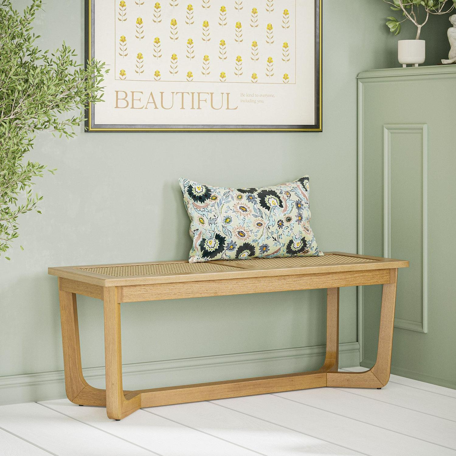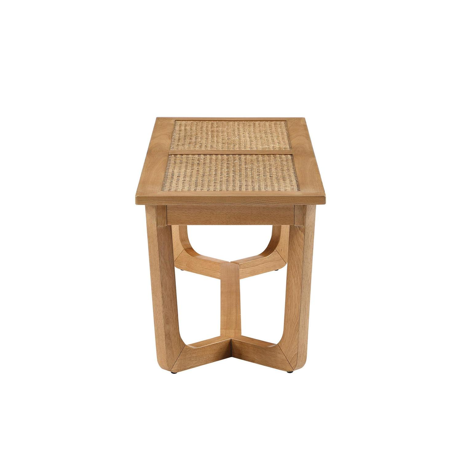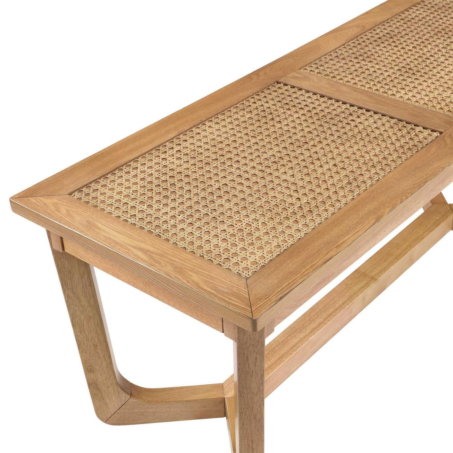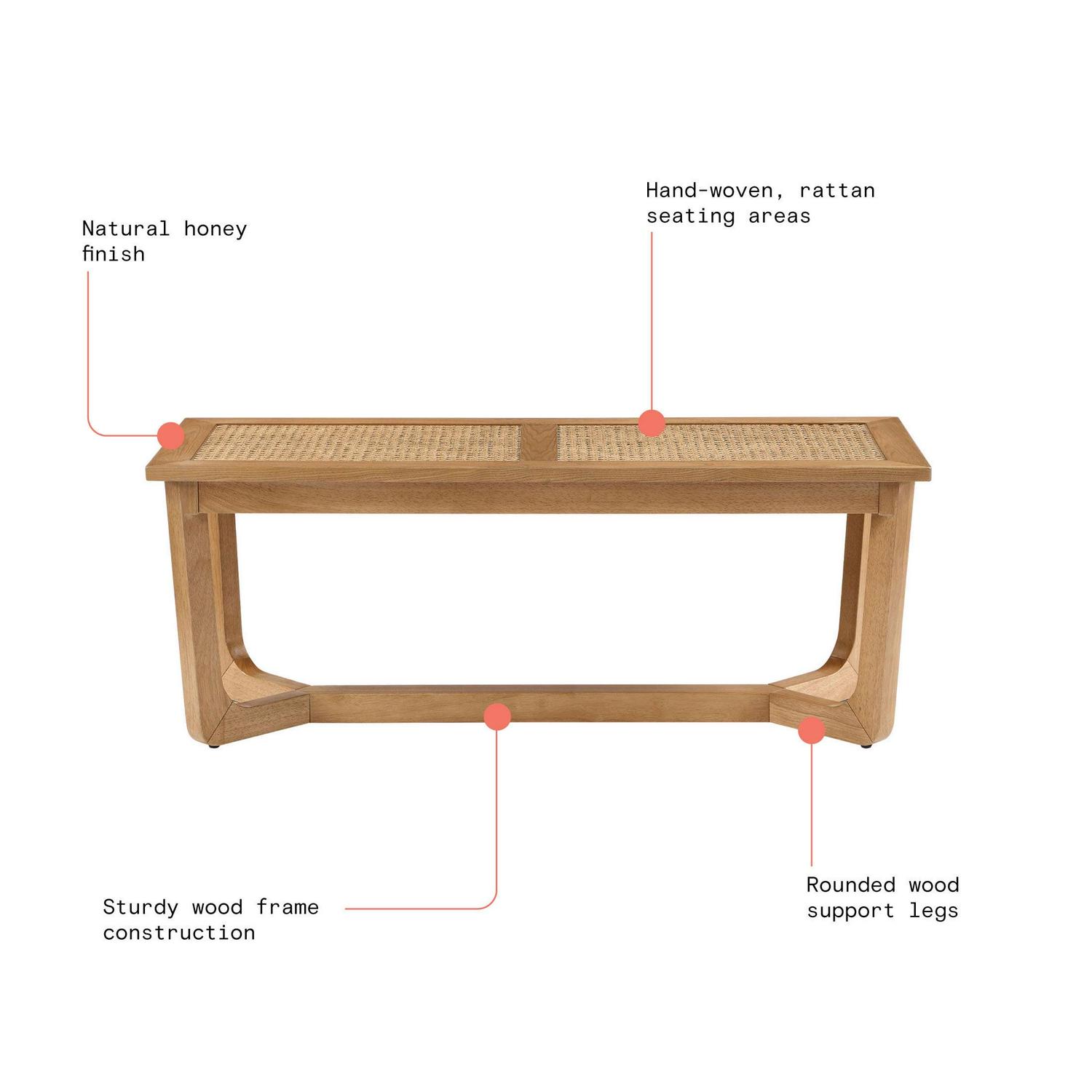 Beautiful Rattan and Wood Bench with Solid Wood Frame by Drew Barrymore, Warm Honey Finish