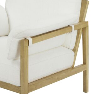 The Beautiful Wrap Me Up Accent Chair, with its captivating design and inviting features, stands as a testament to both style and comfort. Well crafted with a sturdy wood frame, this chair effortlessly blends durability with easy elegance, making it a perfect addition to any living space or reading nook. The frame’s sleek lines and graceful curves add an air of refinement, enhancing the chair’s overall aesthetic appeal. Nestled upon the frame are plush, removable cushions that beckon you to sink into their soft embrace. The chair arms are wrapped in a plush cushion as well and are securely attached with snap-on buttons. The chair is available in two sophisticated color options: Cream and Cornflower Blue. Whether you prefer the calming elegance of cornflower blue or the fresh, crisp look of the cream, this chair effortlessly complements any decor. Whether you’re seeking a statement piece or a cozy retreat, this accent chair embraces you with open arms, inviting you to experience the epitome of comfort and elegance. Pair the Beautiful Wrap Me Up Accent Chair with other items from the Beautiful by Drew Furniture collection to complete your living room (sold separately).