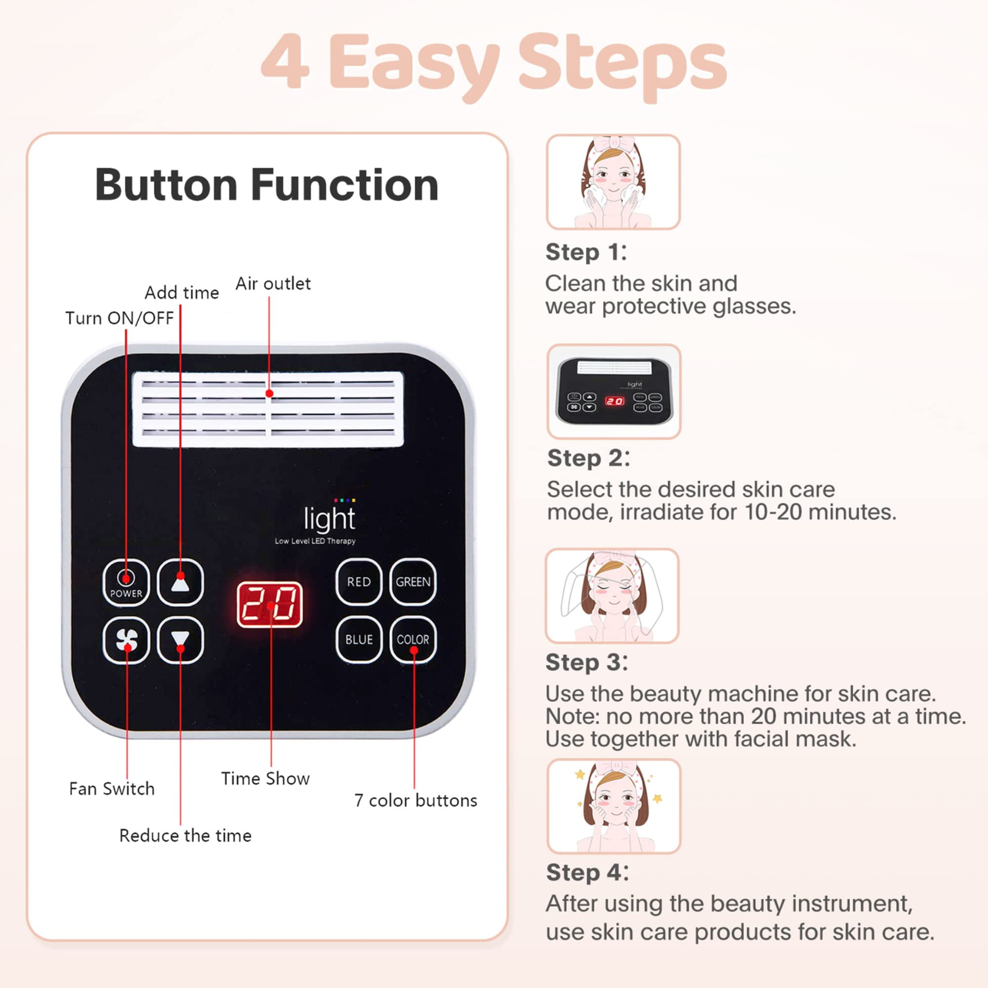 BeautifyEase Red Light Therapy for Face, 7 in 1 Colors LED Face Mask Skin Care Tool
