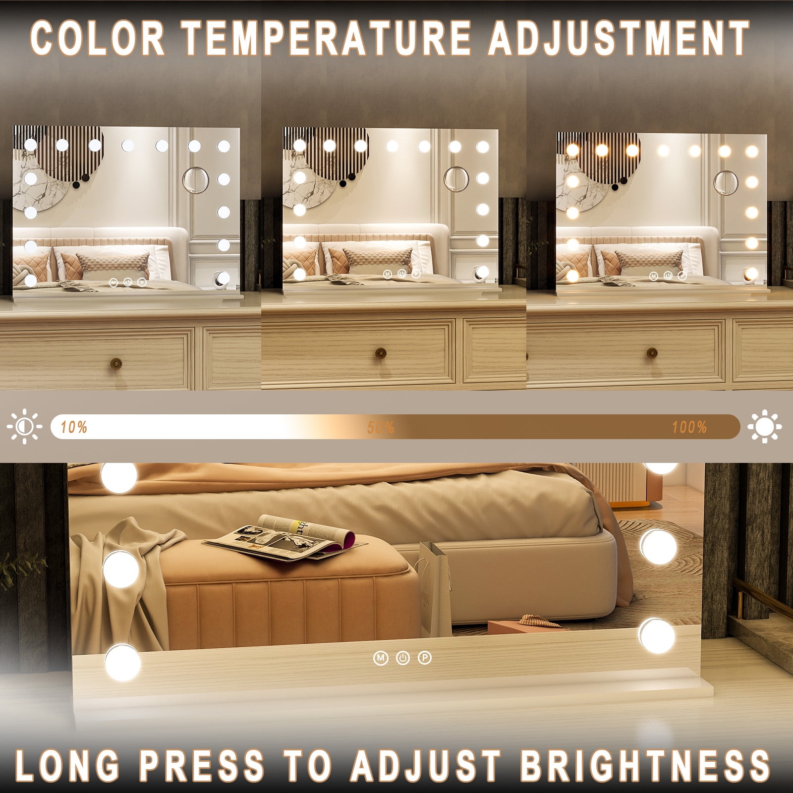 BEAUTYPEAK Hollywood Vanity Mirror with Adjustable Light The BEAUTYPEAK Hollywood vanity mirror is an absolute must-have for any dressing table! Its exceptional lighting is perfect for achieving flawless makeup every day. Transform your bedroom or bathroom into a star-studded suite of glamour with this amazing mirror! And our makeup mirror provides a high level of convenience, making your daily beauty routine a breeze!