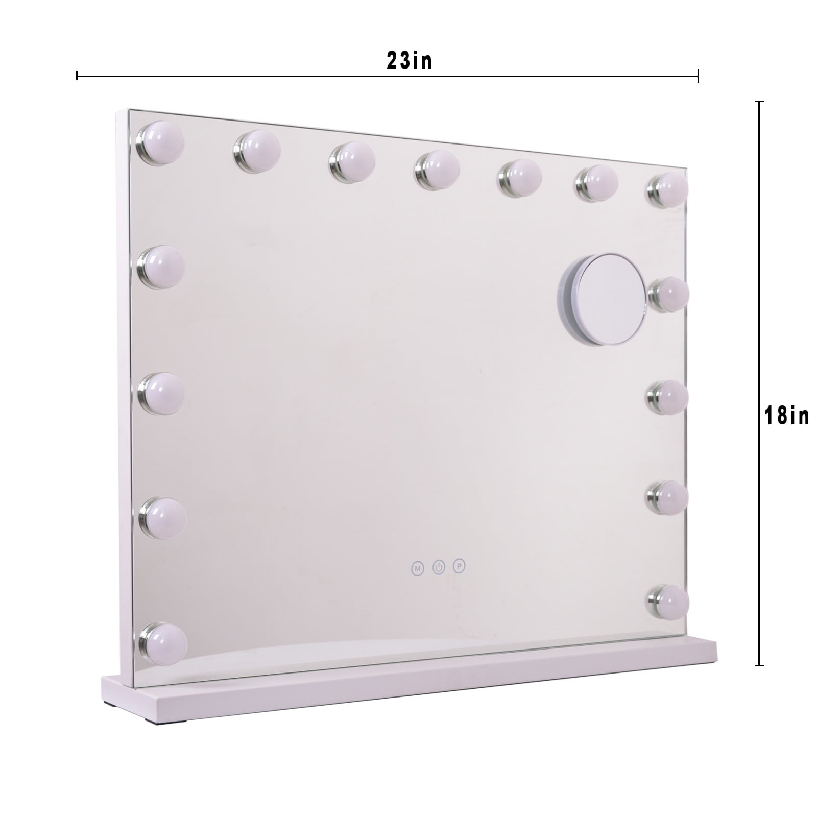 Features: 10X Magnifier: Comes with a 10X magnifying glass, making it the perfect tool for seeing facial details clearly and creating the perfect makeup look. Three Color Modes: Cold/Natural/Warm Light. The brightness can be easily adjusted by simply touching the mirror . Free Rotation: You can all easily adjust the angle of the mirror to get the most comfortable viewing angle. Sensor Switch: The switch on the screen makes it easy to turn the light on and off and adjust the brightness of the bulbs. High Definition: Clearer, more realistic images allow users to more accurately see the condition of their skin for finer makeup. Specification: Brand: BEAUTYPEAK Color select: White Product Dimensions: 23″x18″ (Deviation may exist as the dimensions are measured manually) Shape: Rectangular Style: Hollywood Mounting Type: Freestanding Room Type: Dressing Room Assembly Required: Yes Department: unisex-adult