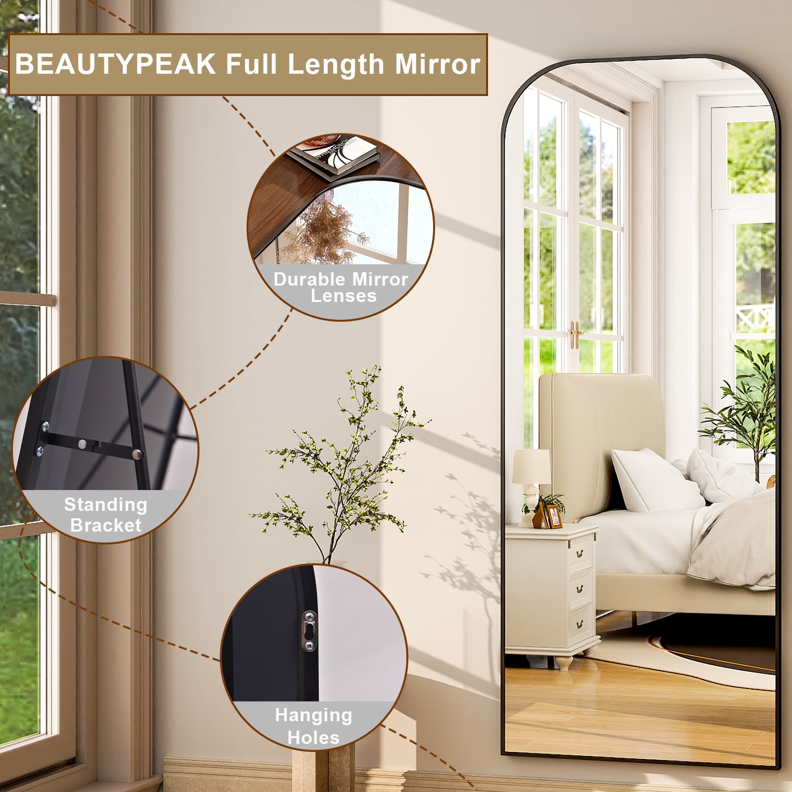 BEAUTYPEAK Round Arch Top Mirror Its unique round arched top design adds both simple and artistic value, making it a true standout piece. This full-body mirror is an absolute must-have for any modern home! The perfect combination of technology and artistry.