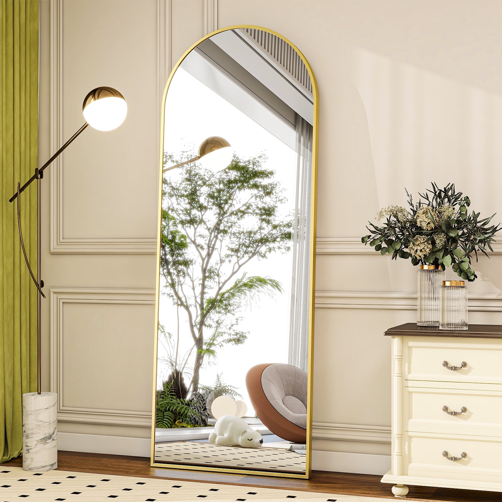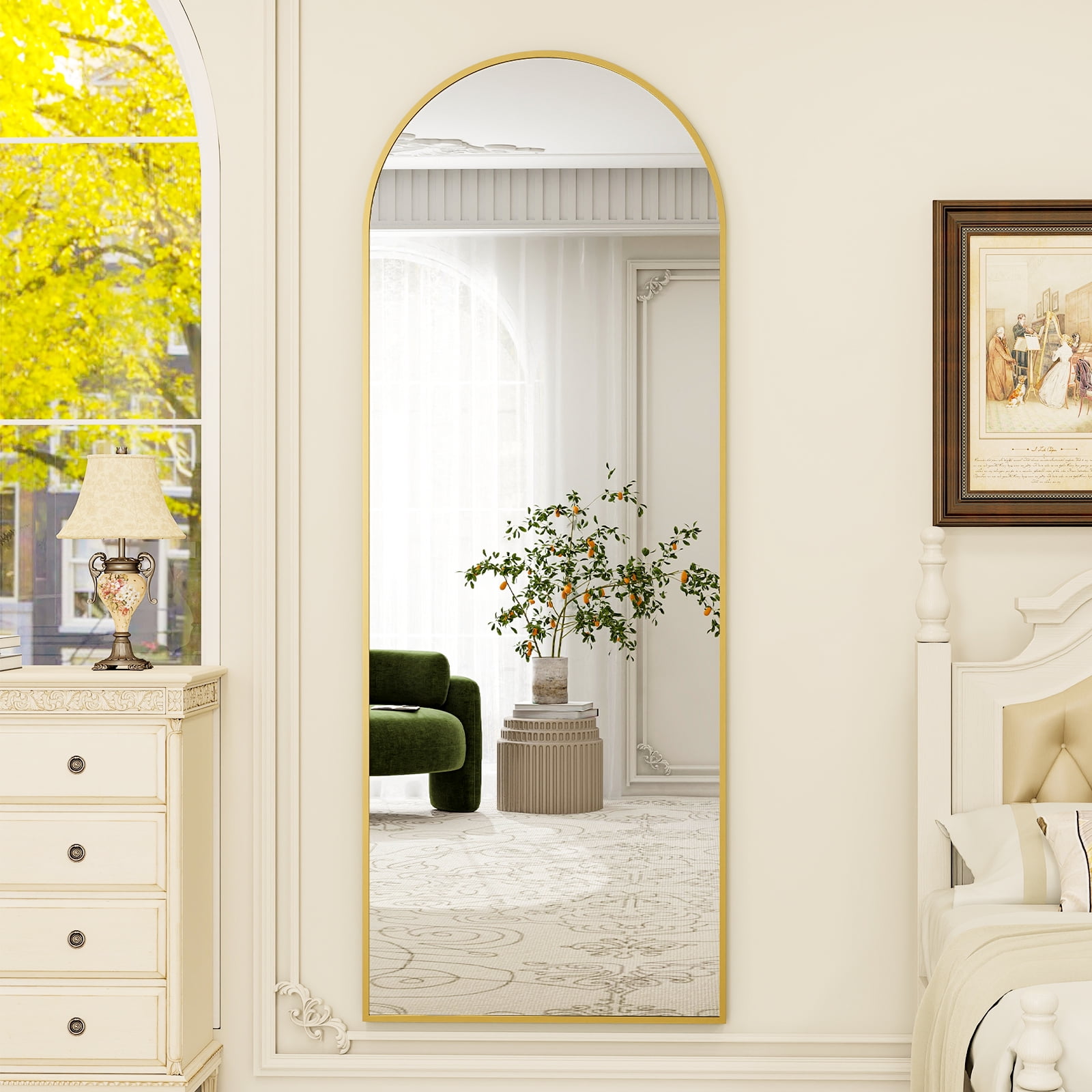 BEAUTYPEAK 64″x 21″ Full Length Mirror Arched Standing Floor Mirror Full Body Mirror, Gold