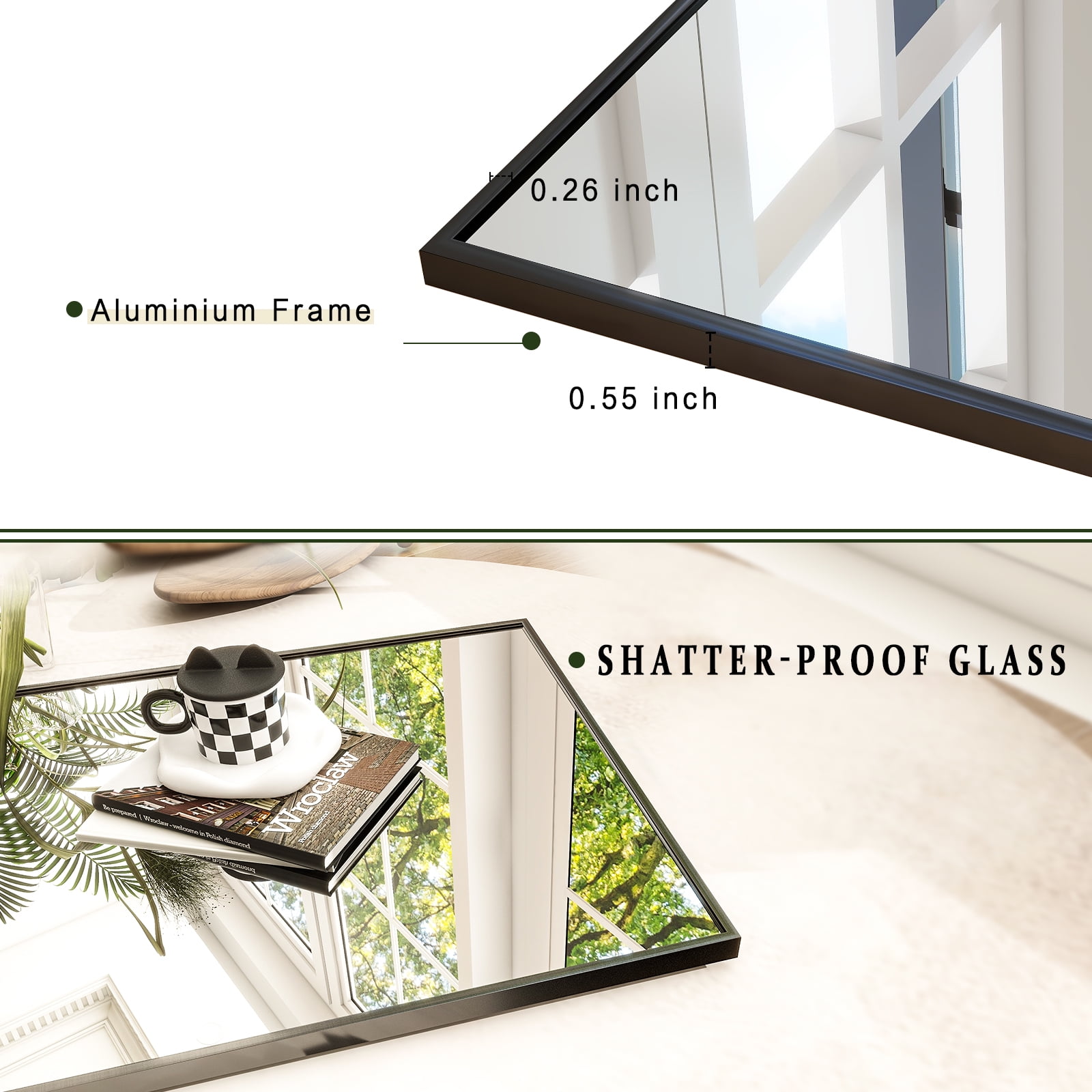 Exquisite Workmanship: Our full Body Mirror is made of high-quality aluminum alloy frame, which is durable and has a shiny appearance. Add shatterproof film on the back of the mirror, you don’t have to worry about sputtering damage caused by breakage. HD Imaging: The full length mirror uses high definition imaging to truly restore and reflect the real world. High transparency glass and quality silver coating will also give you a good image on top. Show Your Beauty From All Angles: The oversized 21x 64 inch large dressing mirror will suit your needs! Large enough for you to see your entire figure in a single glance, whether you’re commuting, dating, or having an important interview, you can use it to see if you’re dressed appropriately. Easy Installing & Saving Space: Very easy to move, whether it’s standing on the floor, hanging on the wall or even Leaning. Easy to operate, no need to worry about taking too much time and effort. The Most Valuable Choice: This big mirror will refresh your dressing room, bedroom, or wherever you need to be!