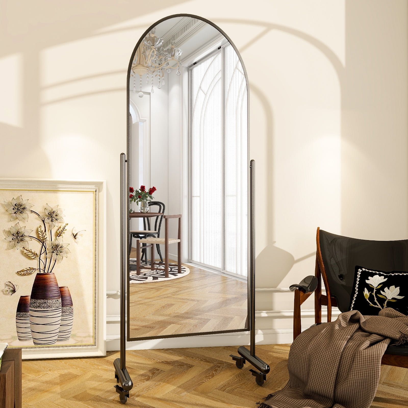 Movable Stand: Equipped with 360° Anti-Noise Casters, the mirror can be moved both easily and quietly. Tiltable Mirror:With the tiltable design, you can easily adjust the angles of mirror to get a perfect refelection you need. Easy Installation: Includes all necessary hardware for hassle-free installation, allowing you to enjoy your mirror in no time.