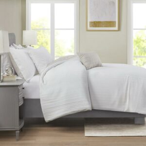 Beautyrest 5 Piece Jasper Bedding Comforter Set, Pleated Velvet, Full/Queen, Ivory