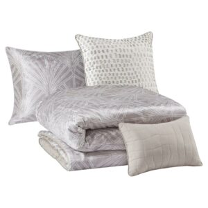 - Set includes oversized comforter, 2 matching shams, 1 square and 1 oblong decorative pillows