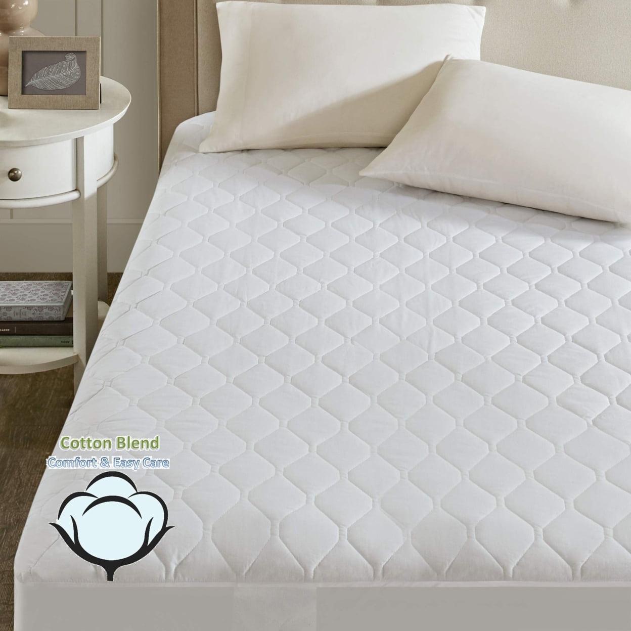 – Cotton blend fabric, fits up to 18″ mattress height