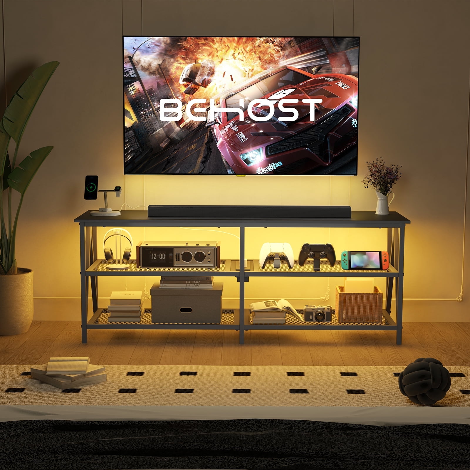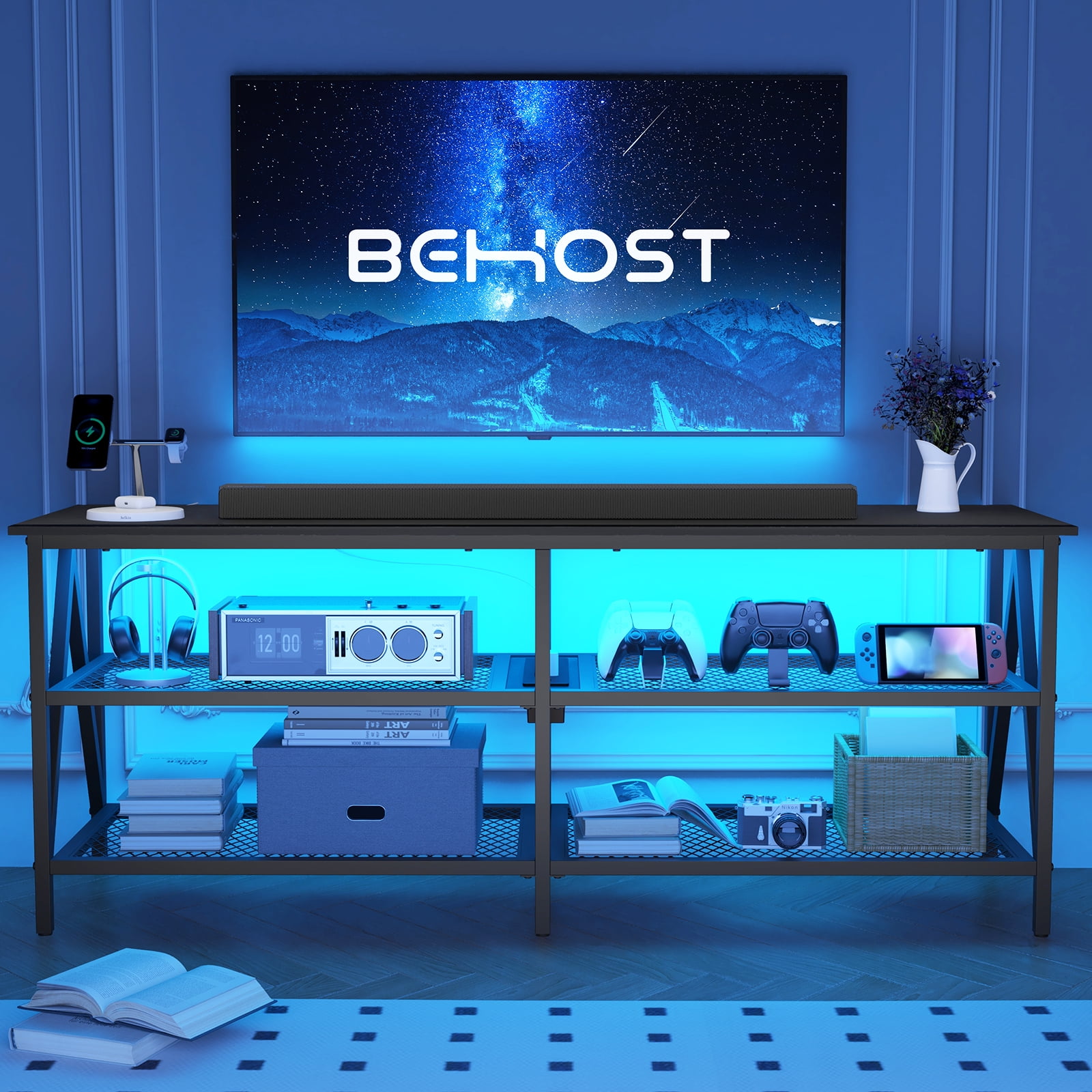 Behost TV Stand for 65 inch TV, TV Cabinet with 20 Colors LED Lights for Living Room,Black