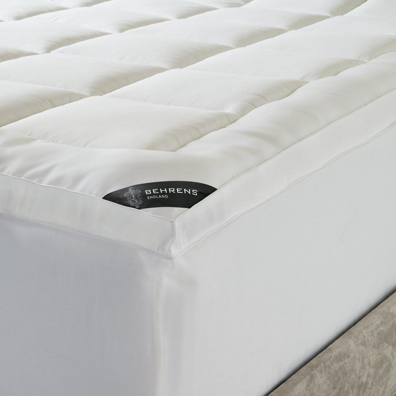 The BEHRENS England 3 in. High-Loft Fiberbed offers an extra 3 in. layer of softness to your sleep experience. This high-loft fiberbed is covered in a soft microfiber, and features an integrated stretchy skirt that will fit mattresses from 18 in. to 22 in. deep. This fiberbed, trimmed in an attractive silver cording and satin corner sash, is designed to sit on top of your mattress so that you’ll have the most luxurious, comfortable sleep night after night.