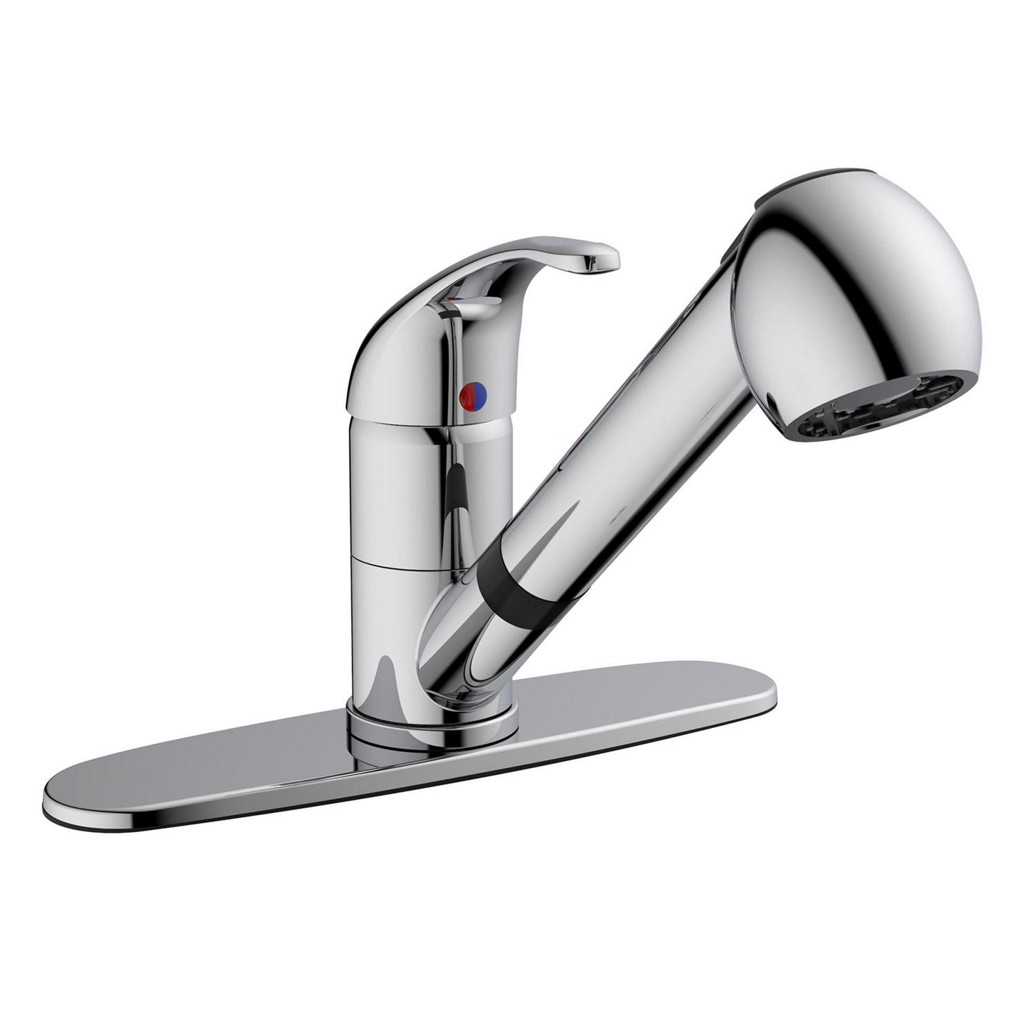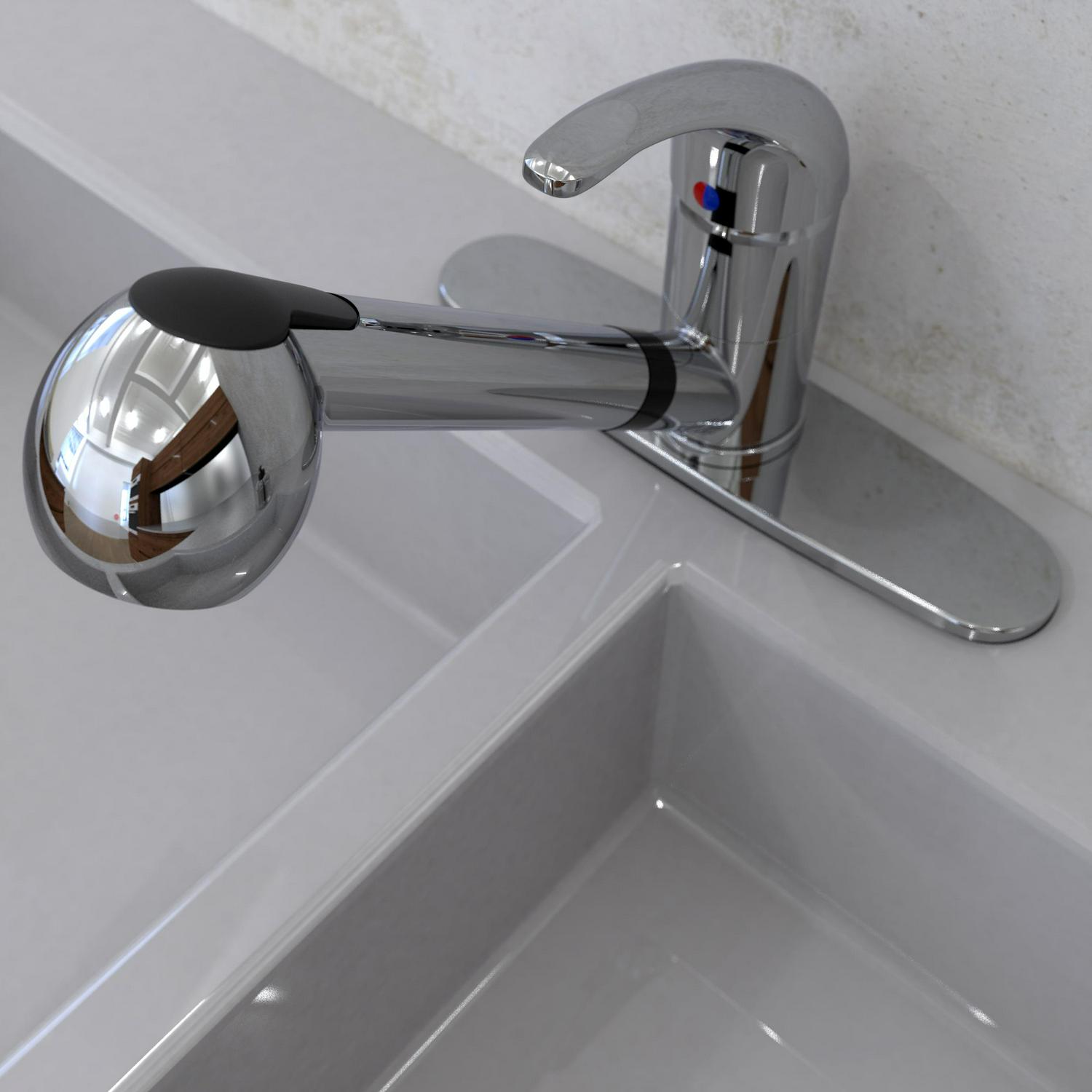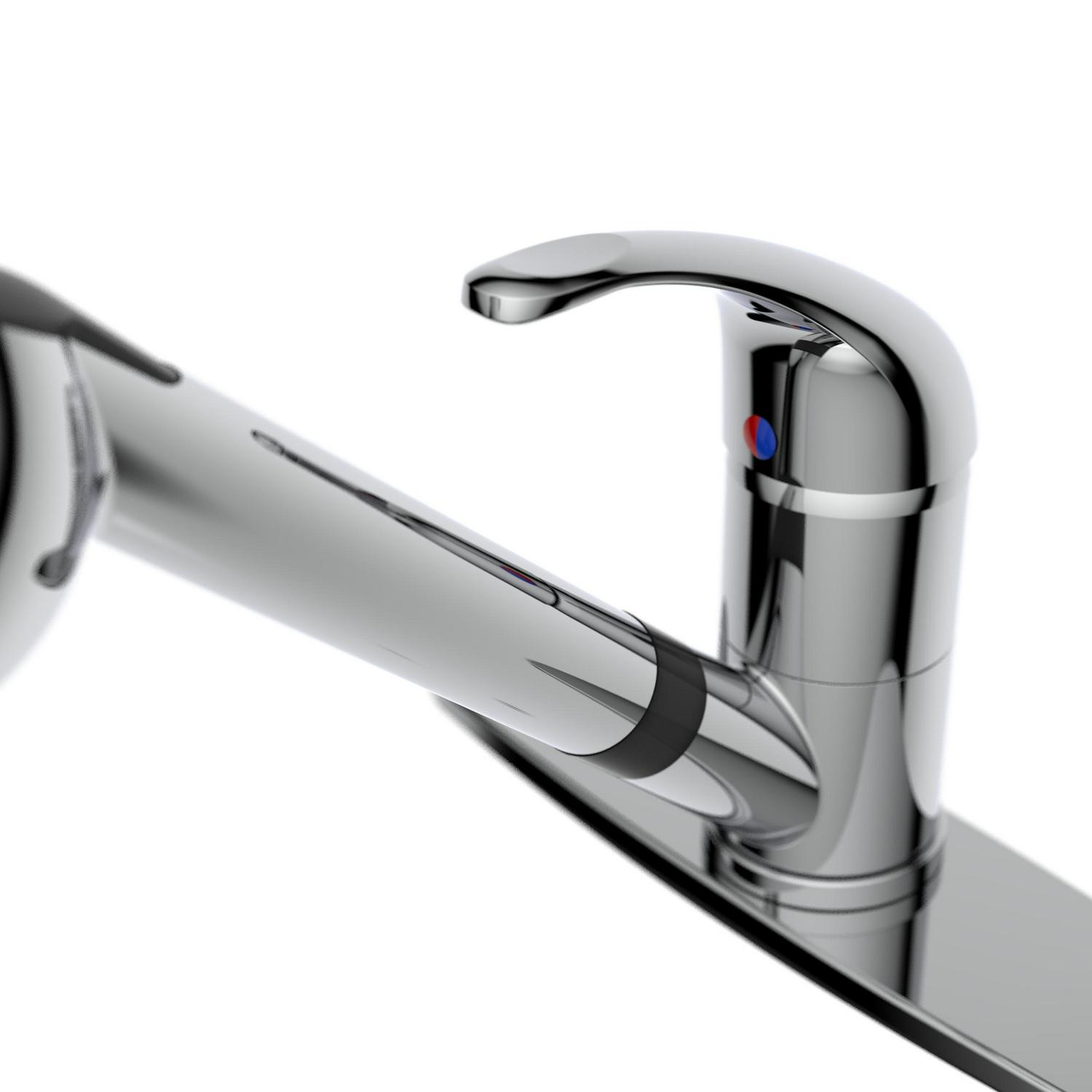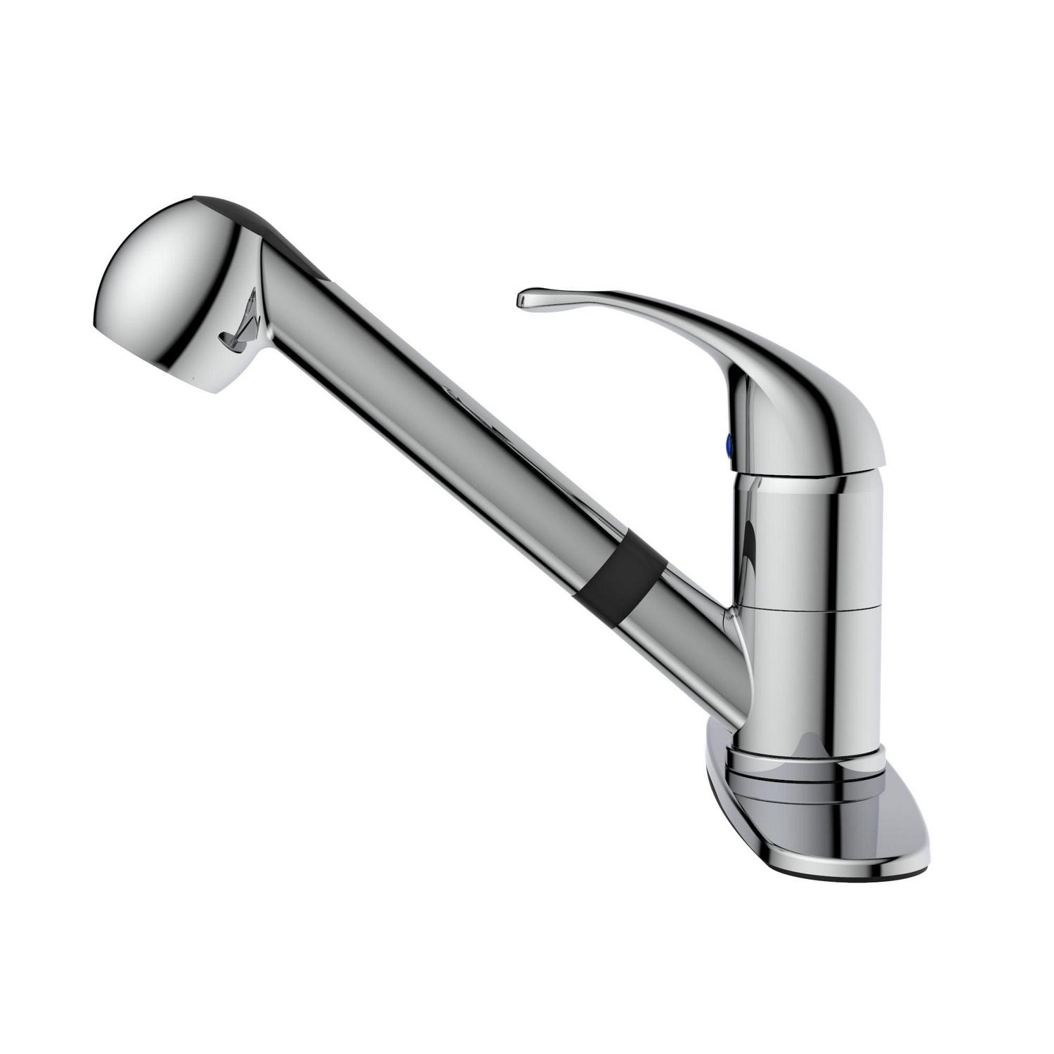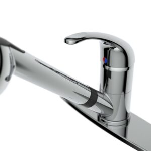Belanger’s affordable faucet series are a great fit for any home, rental property, apartment, RV, camper, or business where an affordable faucet with a classic look is needed. The EBY collection offers traditional, effective and practical products for your plumbing needs. The EBY77CCP features a single handle and swivel pull-out spout with a push-button diverter for spray or stream jet functions. Its brass construction offers durability and high-quality ceramic cartridge allows for maintenance-free use, even in the busiest of households. It includes an optional cover plate for single or three-hole installation to fit the standard kitchen sink setup.