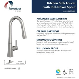 Belanger EVO78CBSS Single Handle Pull-Down Kitchen Faucet, Black Stainless Steel