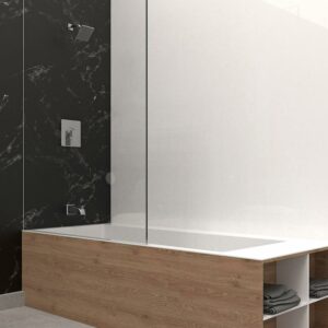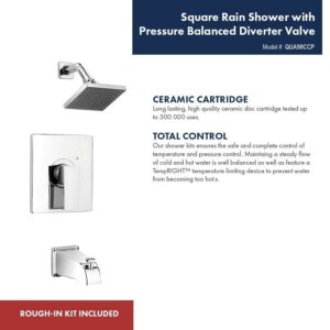 The Quadrato Bathtub/Shower Kit provides affordable luxury with a sleek, modern design and long-lasting durability. Featuring a stylish square showerhead and matching tub spout, the QUA90CCP is of Grade A brass construction and has a ceramic cartridge for maintenance-free use. Its TempRIGHT temperature limiting device prevents water from becoming too hot while soft, silicone nozzles allow you to easily wipe away build-up from hard water and limescale. The kit includes a pressure balanced diverter valve, swivel shower head, bathtub spout, shower arm, and flange, as well as all trim and valve components needed for installation. You can install with confidence knowing Belanger products are backed with a Limited Lifetime Warranty.