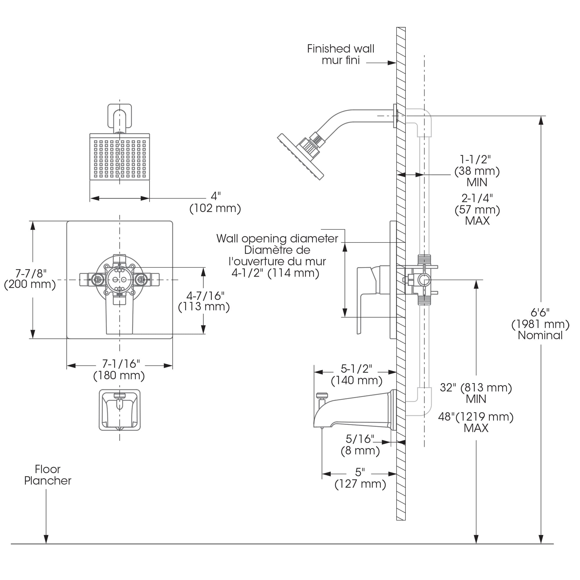The Quadrato Bathtub/Shower Kit provides affordable luxury with a sleek, modern design and long-lasting durability. Featuring a stylish square showerhead and matching tub spout, the QUA90CMB is of Grade A brass construction and has a ceramic cartridge for maintenance-free use. Its TempRIGHT temperature limiting device prevents water from becoming too hot while soft, silicone nozzles allow you to easily wipe away build-up from hard water and limescale. The kit includes a pressure balanced diverter valve, swivel shower head, bathtub spout, shower arm, and flange, as well as all trim and valve components needed for installation. You can install with confidence knowing Belanger products are backed with a Limited Lifetime Warranty.