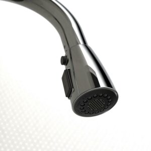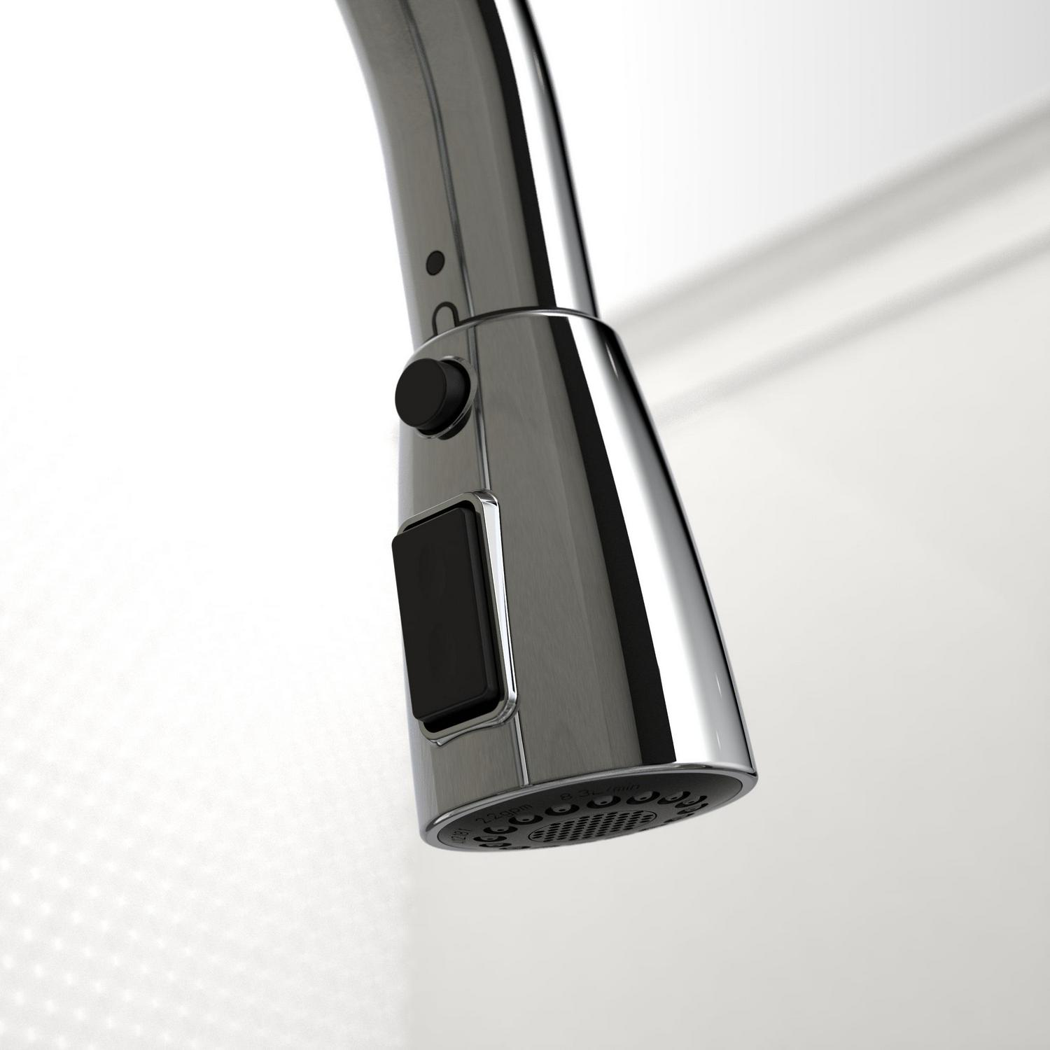 – Swivel pull-down spout with push-button diverter for stream or spray jets