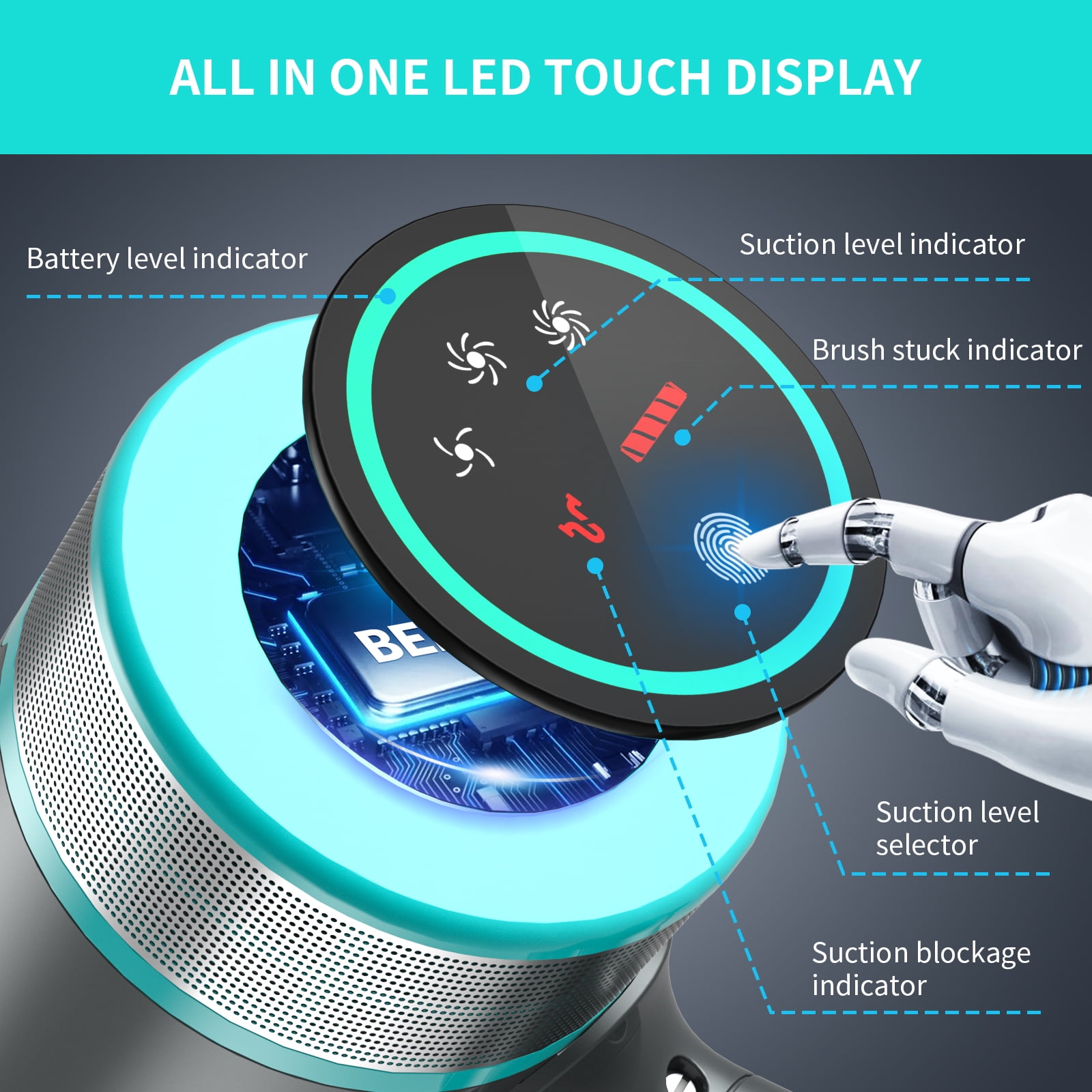 【26KPa Powerful Suction & 50-Min Long Runtime】 Belife cordless vacuum cleaner with large-capacity rechargeable battery: economic mode (50mins), standard mode (30mins), and strong mode (15mins).Belife Root Cyclone Technology gives vacuums more power and long-lasting suction. It has enough power to remove hidden dirt and quickly dispose of large debris. Removable battery makes it easy to rechargeable separately and doubles the runtime if you buy an additional battery. 【6-Layer Efficiency Filtration System】Airtight filtration system captures 100% fine particles (size > 0.1 μm) and 95% of ultra-fine particles (size < 0.1 μm). Thus, it exhale ultimate purified air for your family and prevents secondary air pollution. Standing with one hand pull can empty dust cup, completely say goodbye to dust inhalation,creating a healthy environment. 【380W Brushless Digital Motor & Motorized Brush Head】 Brushless motor can reach 90,000rpm, generating 25Kpa/3.8PSI strong suction. Equiped with powerful motorized floor head with LED headlights, it is great for cleaning up crumbs on the kitchen floor, dirt under the bed, couch, furnitures and at dark places. Ultra-quiet ≤65 db. A comfortable experience for you and your family! 【Touch Screen & LED Display】 Large touch screen LED control panel makes it effortless to adjust the vacuum power and know the status your vacuum cleaner. This design is more convenient and trouble-free compared with traditional button operation. The control panel shows the battery level, suction performance, brush stuck alert and suction blockage alert. 【6 in 1 and Lightweight】 Belife handheld vacuum cleaner is equipped with multiple brush heads and telescopic link. It can be assembled arbitrarily for easy cleaning of stairs, car interior, curtains and other hard-to-reach places. Lightweight design allows you to operate with one hand effortlessly. This cordless vacuum will be an excellent gift for your family or friends who have pets. Special feature: 25.9VDC 7-cell Large Capacity Battery 3 Adjustable Power Modes 380W Upgrade Brushless Motor 25000Pa/3.8 PSI Strong Suction Power Suitable for Hard Floor &Carpet 180° Flexible Brush Head with LED Lights 6 Stages Fully-Sealed Filtration System Belife Root Cyclone Technology more powerful and lasting suctionWhat's in the box? Battery Long crevice 2-in-1 brush Retractable metal tube Power Adapter Wall mount with screws Main motor (motor & dust cup) Motorized brush head with Roller Brush Cleaning gadget