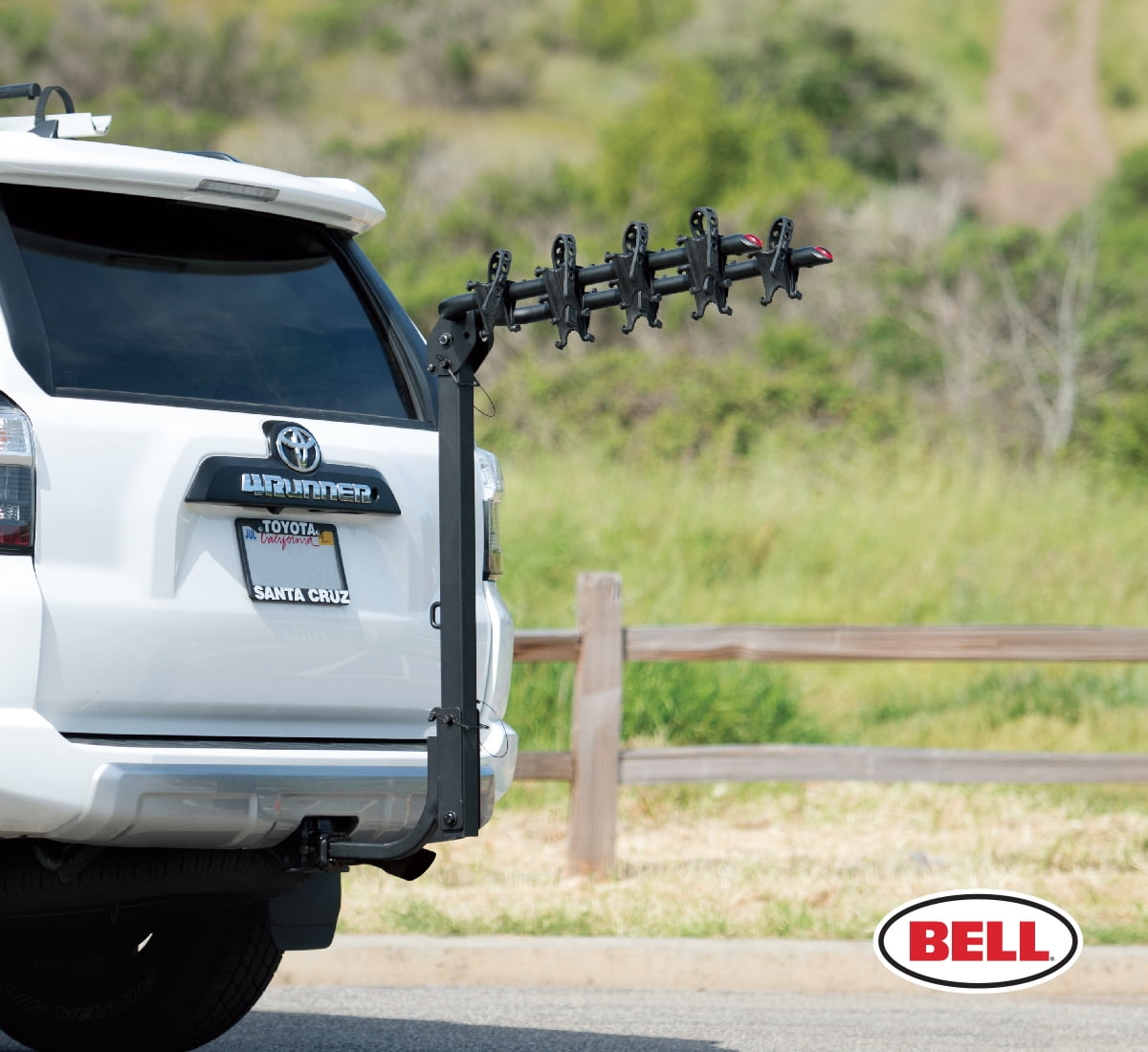 Bell Hitchbiker 450 4-Bike Hitch Rack, Gray Foldable Fits 1-1/4″ and 2″ receivers. Soft stable cradles