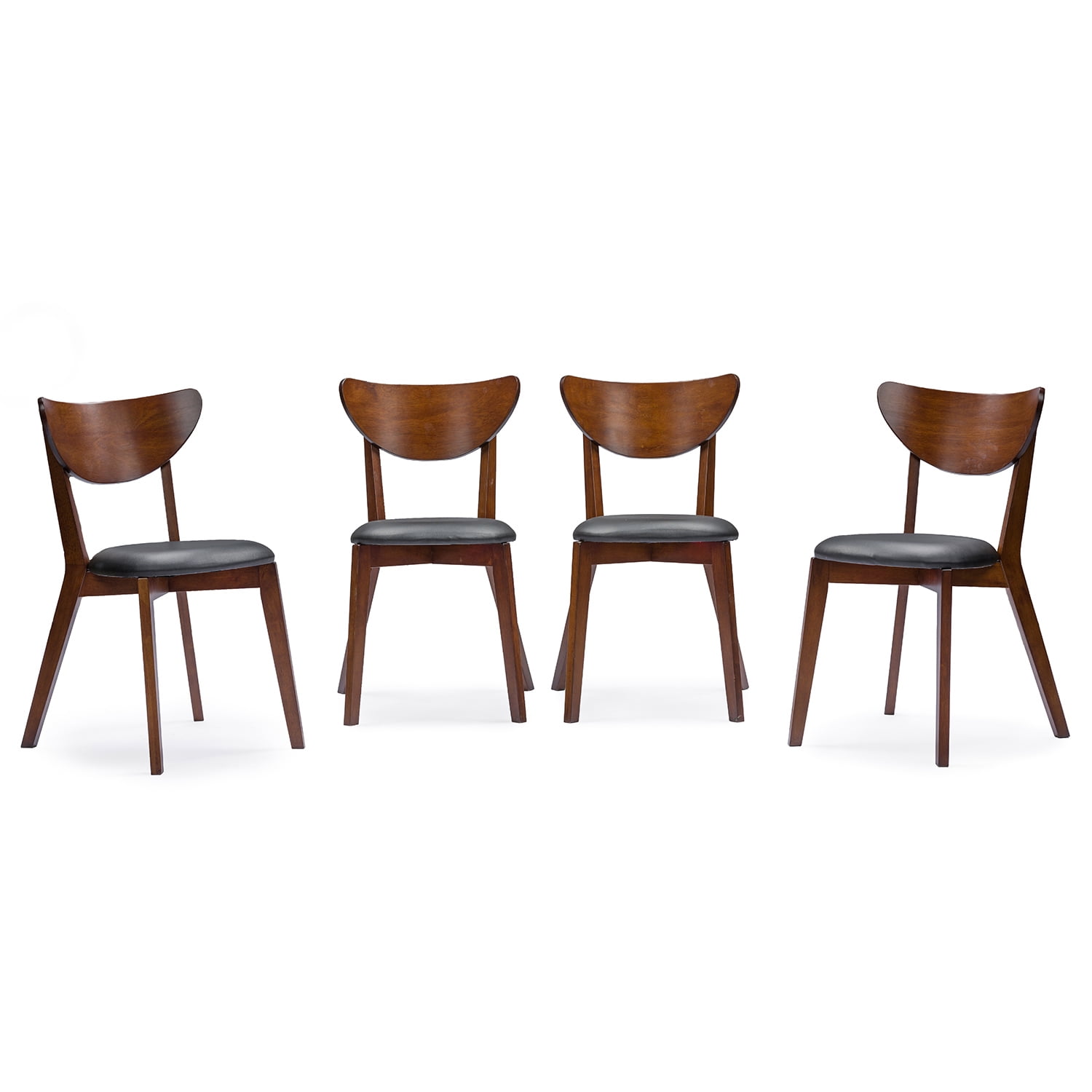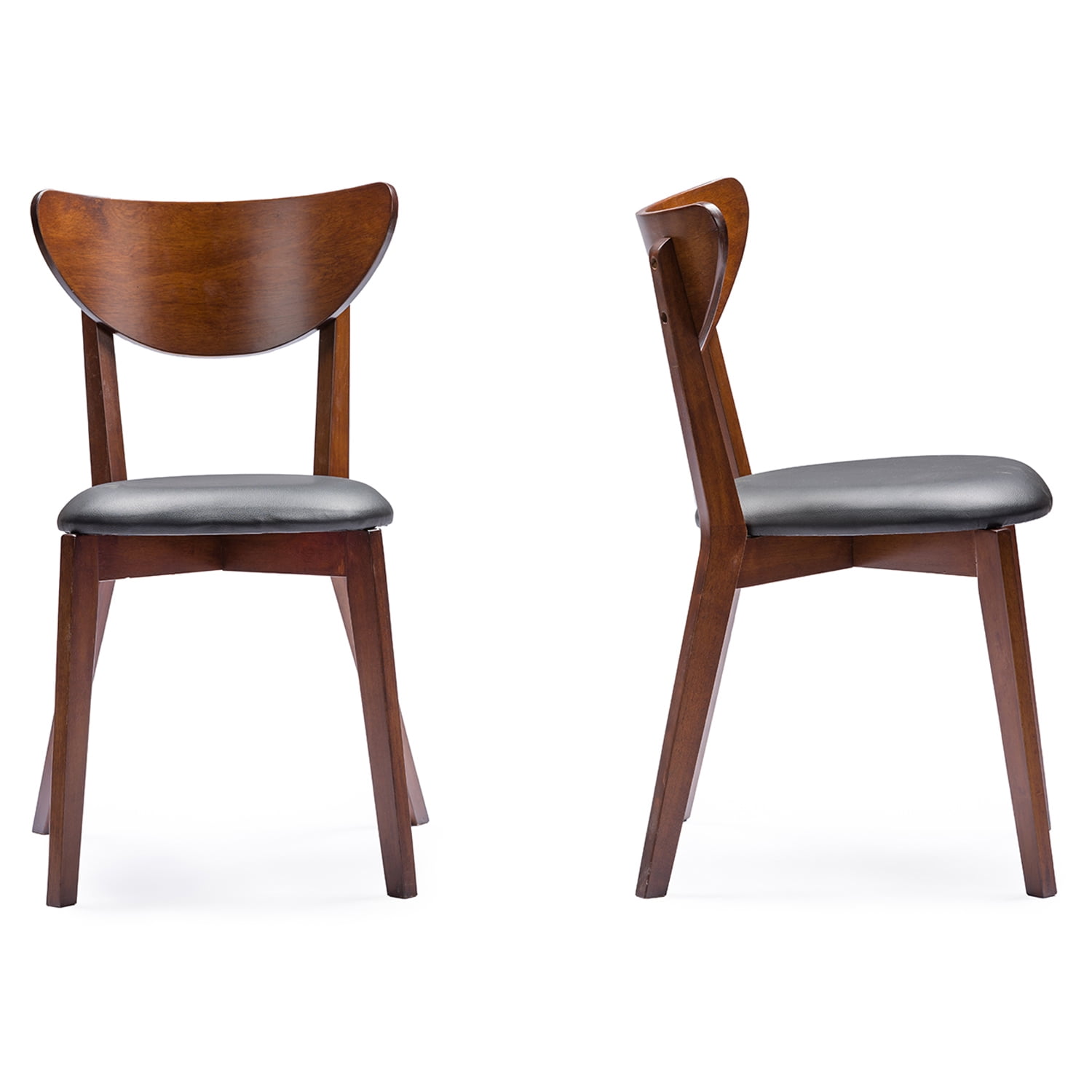 Somer 5-Piece Dining Set certainly has something to say. But the black PU leather upholstered seat represent only part of this dining set’s charm. The stylish mid-century dining table, constructed with solid rubber wood and MDF with walnut veneer makes a timeless statement. This five-piece set features four chairs and a sturdy table for years of use.