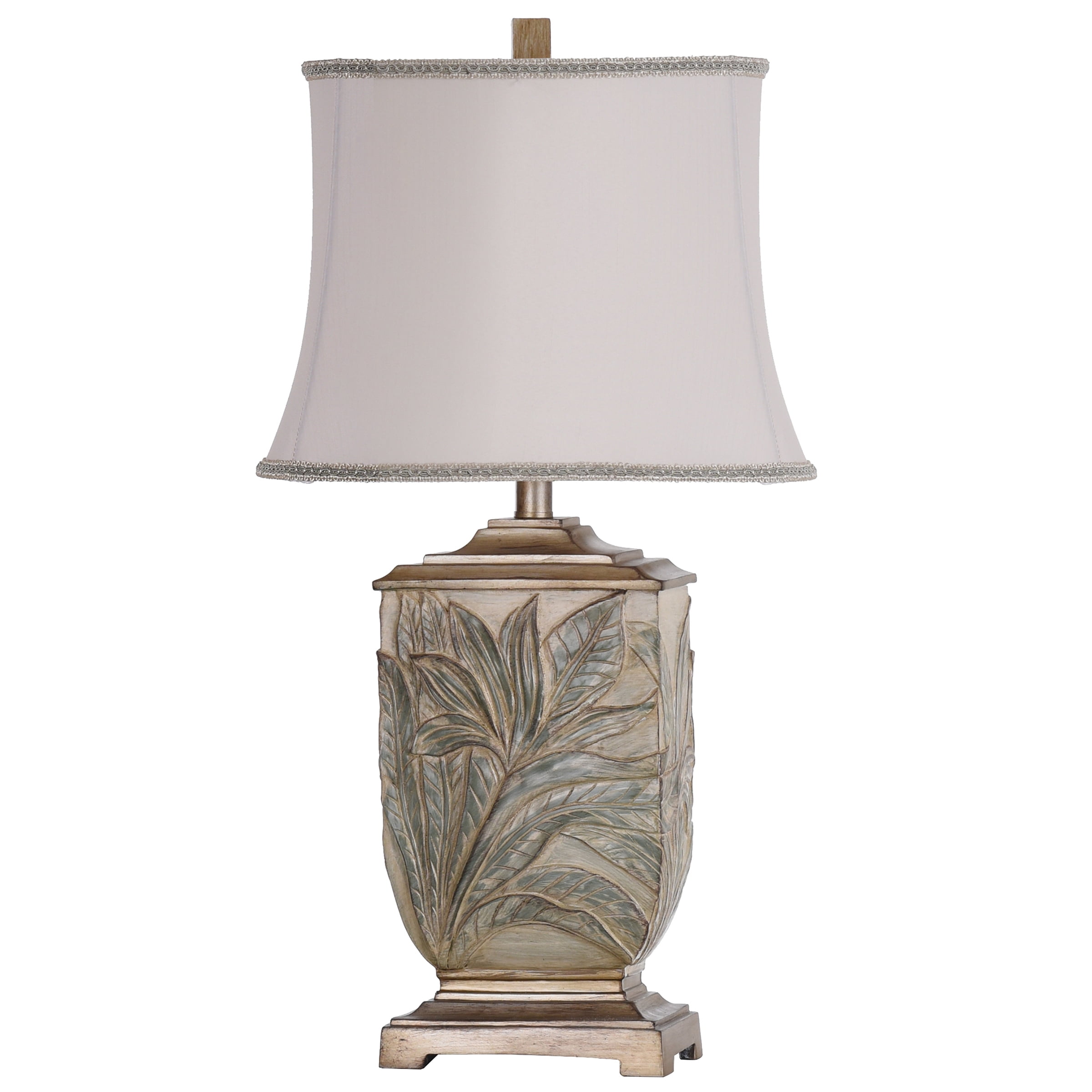 A chic natural touch with a vintage inspiration, the Bellevue table lamp is made with brass accents and soft tones to accent a variety of decorative motifs. Crafted with expert care, it features a gently curved base in a classic urn shape with square edges and leaf pattern relief detailing. This base is topped with a squared fabric hardback shade for a tall profile and vintage style.