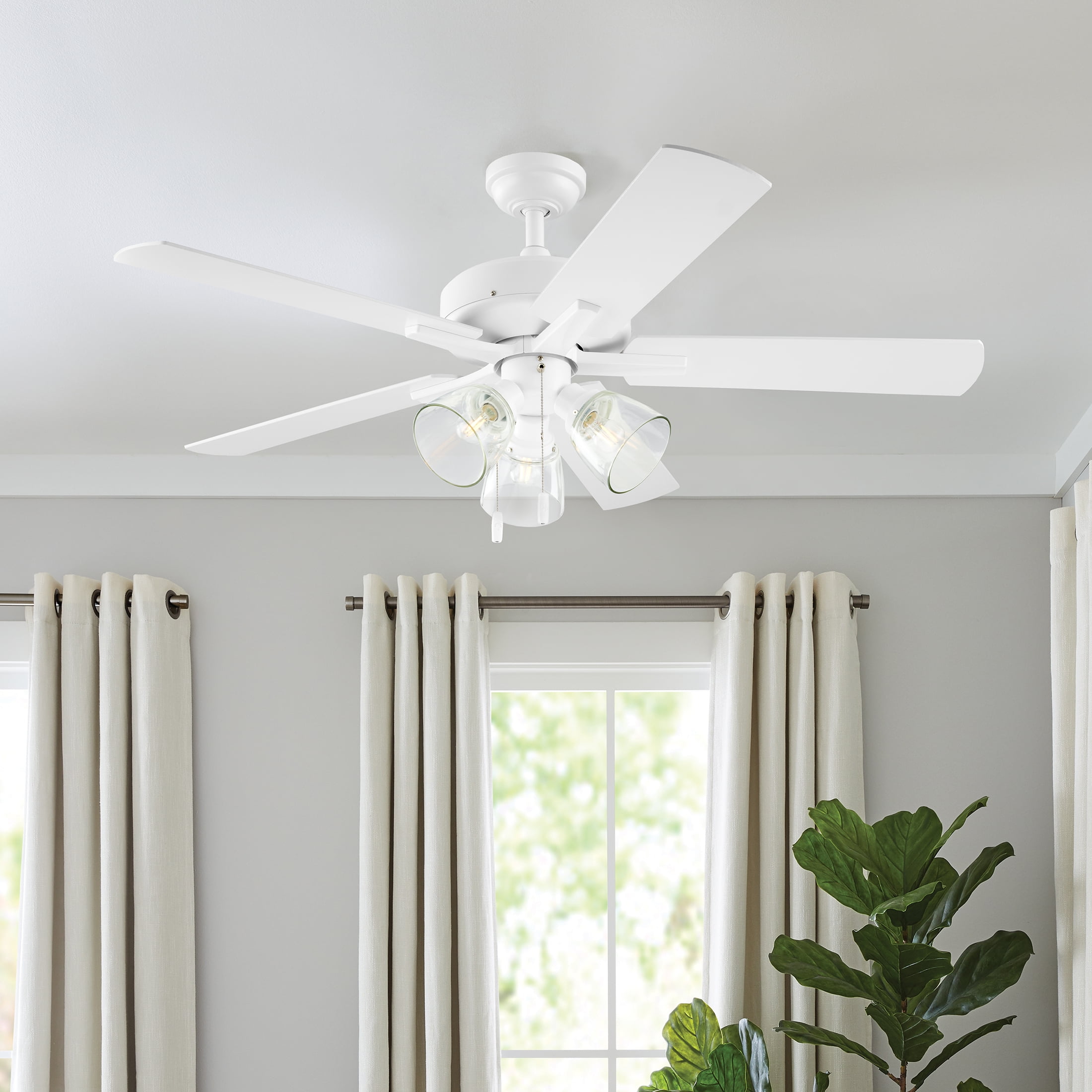 5 Reversible Blades- Choice of Driftwood and Classic Walnut Finishes Transitional Style Dimensions: 52 in. D x 52 in. W x 19.49 H