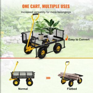 BENTISIM Steel Garden Cart, Heavy Duty 500 lbs Capacity, with Removable Mesh Sides to Convert into Flatbed, Utility Metal Wagon with 180A Rotating Handle and 10 in Tires, Perfect for Garden