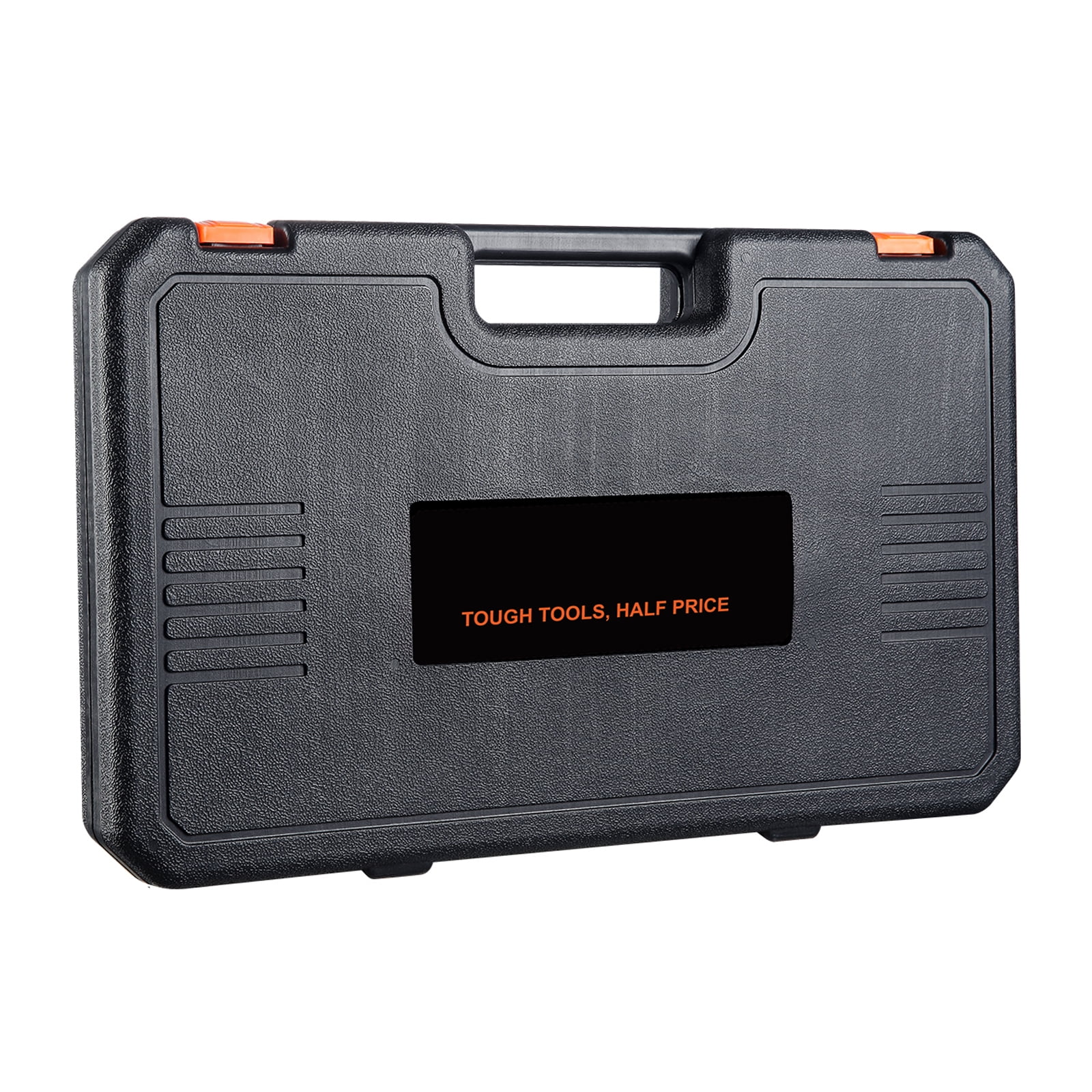 Cr-Mo Industrial-Grade Alloy Steel: Crafted from premium impact-grade alloy steel, our 1/2 impact socket set with Cr-Mo industrial-grade alloy steel offers exceptional enhancements in impact resistance and absorption. Through the utilization of vacuum heat treatment, the steel undergoes rapid heating and cooling processes, resulting in a polished and highly durable surface. This makes it well-suited for a wide range of operational environments. High Torque: Distinguished by its hexagonal drive design, which sets it apart from traditional designs lacking rounded corners, this socket tool set significantly reduces pressure exerted on fasteners during impact. As a result, it minimizes wear and effectively prevents bolt rounding and stripping. Easy-to-Read Size Markings: The size markings on these 34pcs impact driver socket set are meticulously laser-etched and rolled, ensuring effortless identification of socket sizes even in low light conditions. Convenient Storage & Transportation: The set is accompanied by a moderate-weight metal toolbox, providing convenient portability. The toolbox facilitates organized storage of the tools after use, eliminating the risk of unnecessary scattering or loss. Abundant Components: This comprehensive set includes an array of components, such as deep sockets 8mm, 9mm, 10mm, 11mm, 12mm, 13mm, 14mm, 15mm, 16mm, 17mm, 18mm, 19mm, 20mm, 21mm, 22mm, 23mm, 24mm, 25mm, 26mm, 27mm, 28mm, 29mm, 30mm, 31mm, 32mm, 33mm, 34mm, 35mm, 36mm. Other components include extension bars in lengths of 3″,5″,10″, 1/2″ impact universal adapter, 1/2″F x 3/8″M adapter.