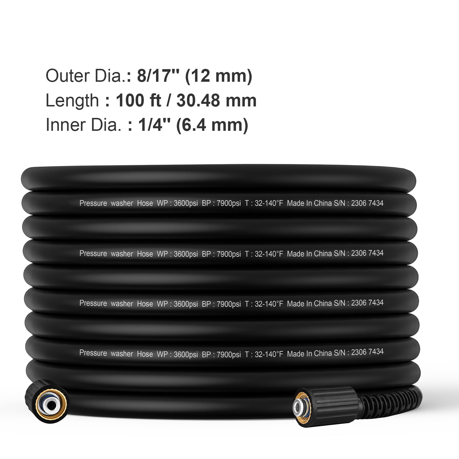 VEVOR 100ft 4200 psi High Pressure Power Washer Hose 1/4″ Quick Connection