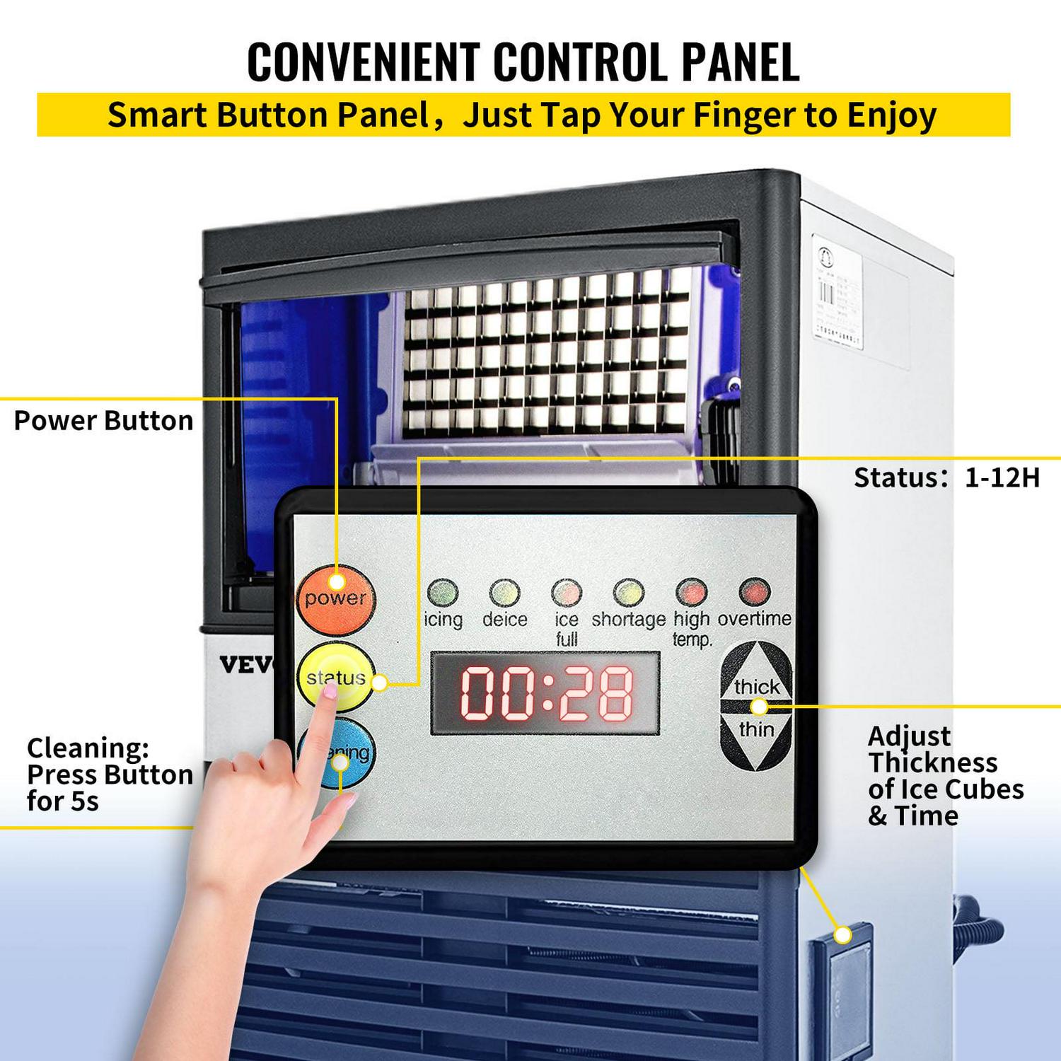 – CONVENIENT OPERATION – Convenient button control panel clearly shows functions. Auto Clean: one-button cleaning function cleans all pipes and trays, ensuring that the ice cubes are clean and free of odor. Reservation & Ice Thickness Adjustment: If you need ice cubes one by one, just adjust the thickness of the ice. Thin ice: 5-8 mins, Medium ice: 8-11 mins, Thick ice: 11-15 mins. Ice making process and monitors malfunctions, fully automatic, simple, and efficient operation.