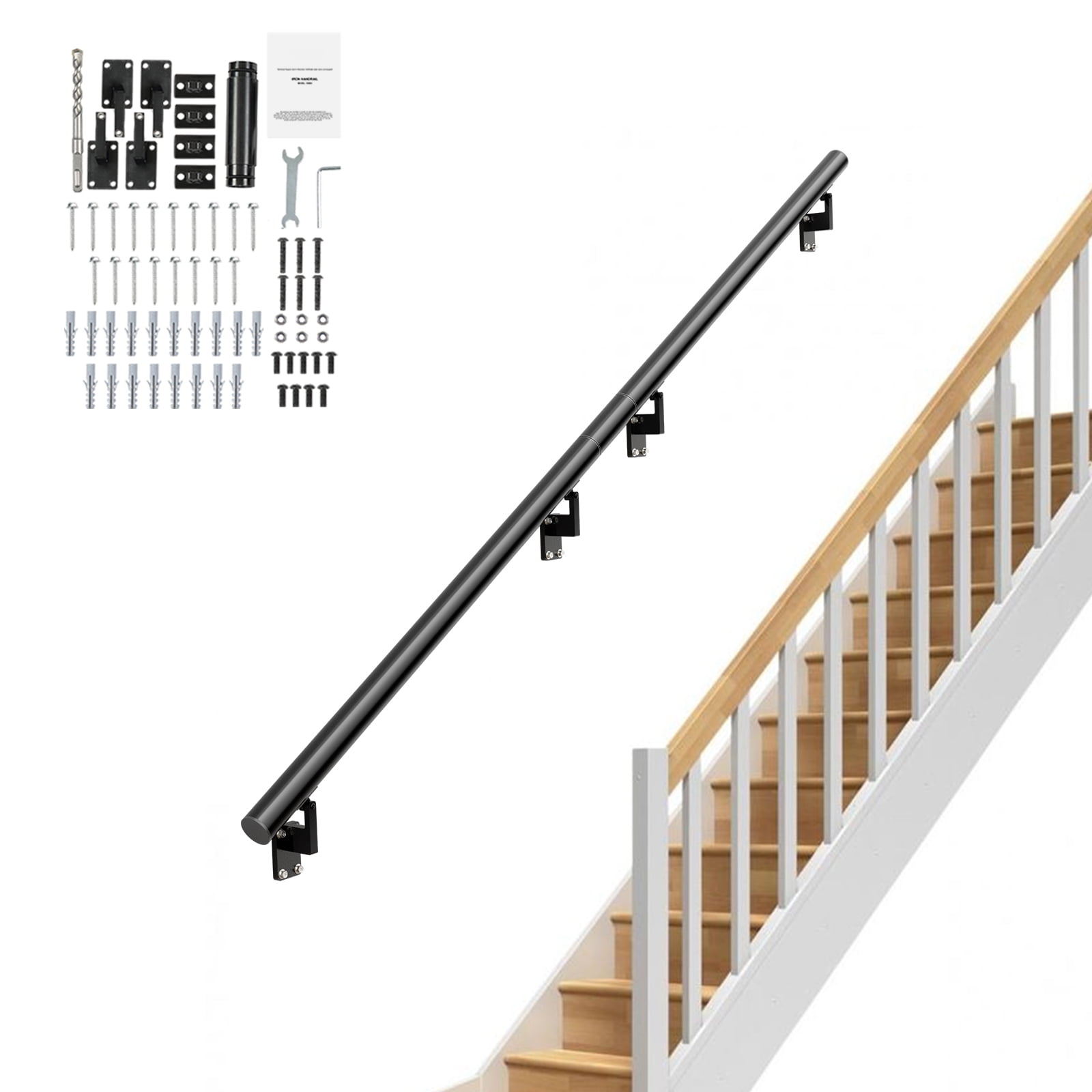 Enhanced Stability: We have adopted a robust screw fixation method to ensure a secure connection between the handrail and the stairs. The non-slip design, coupled with outstanding load-bearing capacity of up to 440 lbs / 199.58 kg, allows you to rely on and support the handrail with confidence. Comprehensive Accessories: This stair handrail comes with specialized accessories, ensuring a simple and convenient installation process. There’s no need to purchase additional parts or tools. Just follow the instructions, and you can easily install the handrail, saving time and effort. Fits Various Stair Sizes: With a variety of available sizes, you can choose to install the handrail as a single segment or in multiple combinations to overlap safety concerns across the entire staircase area. Ergonomic Design: The cross-section size is φ50 x 2, providing a comfortable gripping experience that fully complies with ergonomic principles and standards. We have carefully designed the handrail’s size and shape, allowing you to naturally and effortlessly grasp it, whether you are standing or going up and down the stairs. Versatile Usage: With its sleek black appearance and powder-coated surface, the handrail easily complements various interior styles, making it a perfect fit for different decoration styles. Whether for single or multiple segments, it can be easily installed and adjusted to accommodate different stair lengths, meeting various environmental needs. Friendly Note: Black and white screws are shipped randomly
