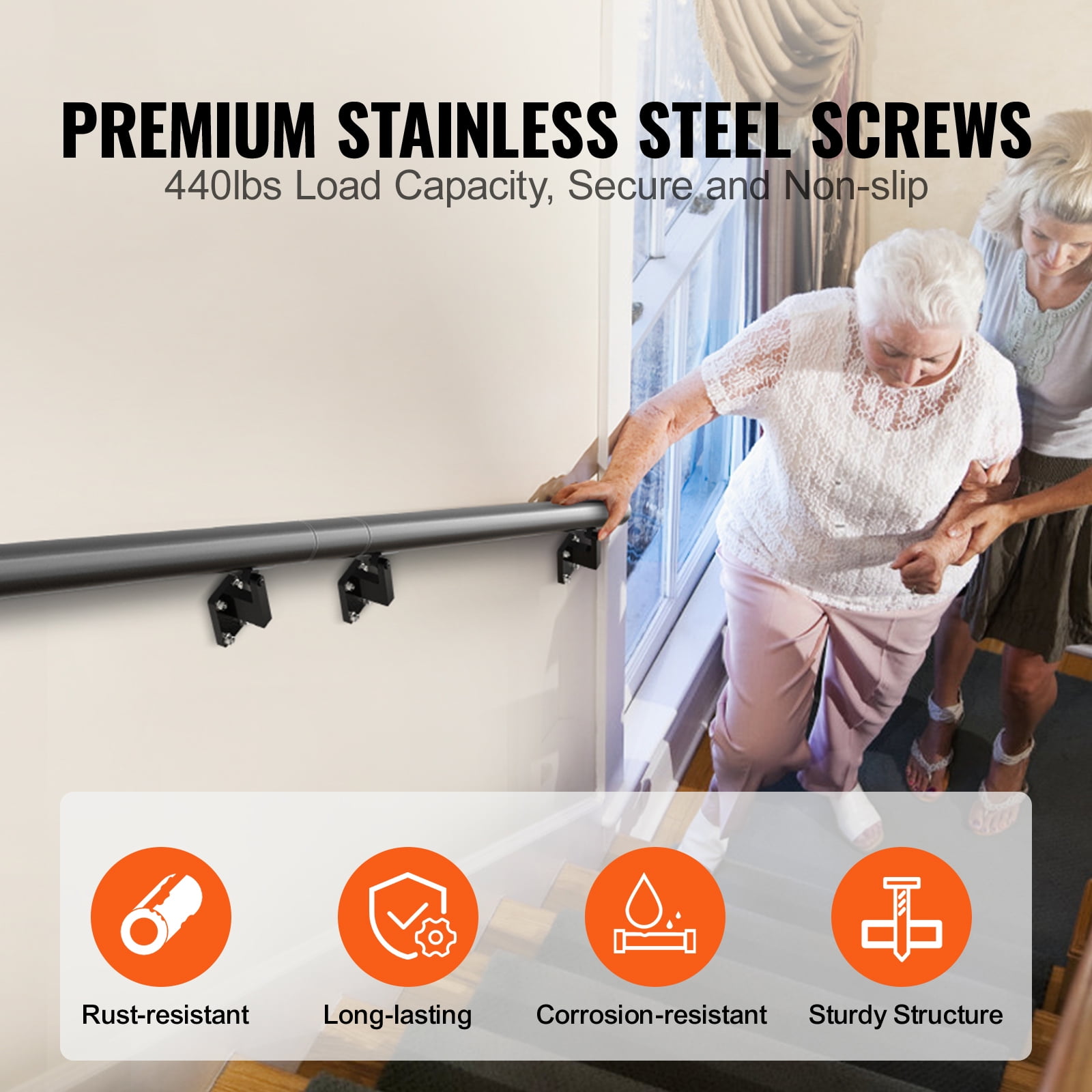 VEVOR 12 ft Wall-Mount Handrail Stair Railing Aluminum Alloy w/ Installation Kit