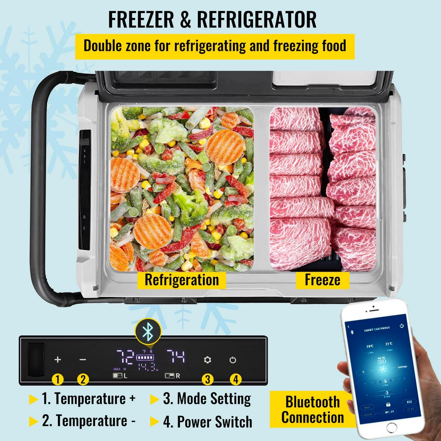 BENTISM 12 Volt Car Refrigerator Portable Freezer 48Qt Dual Zone with APP Control