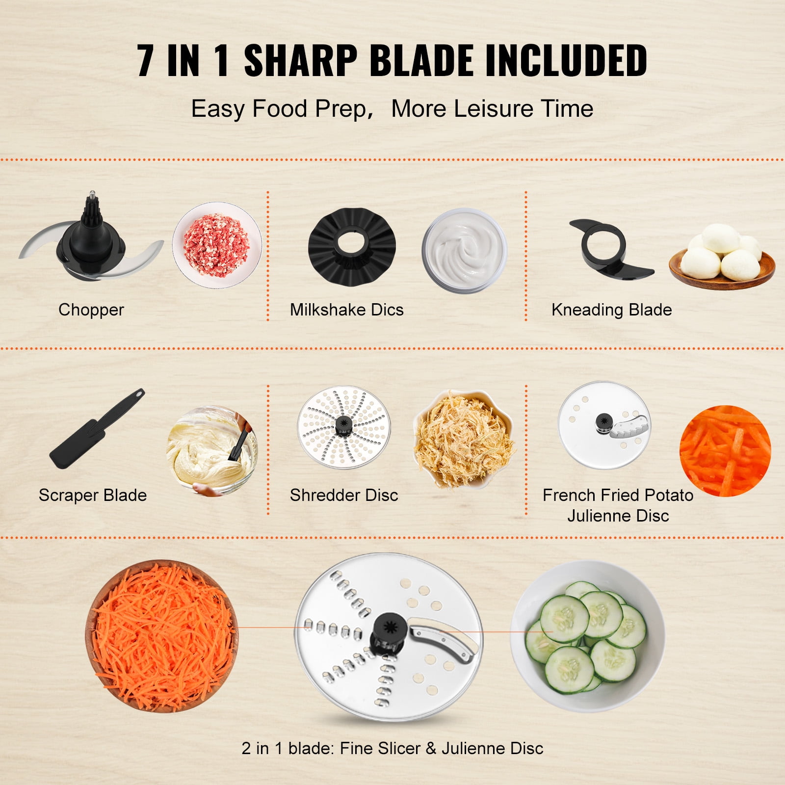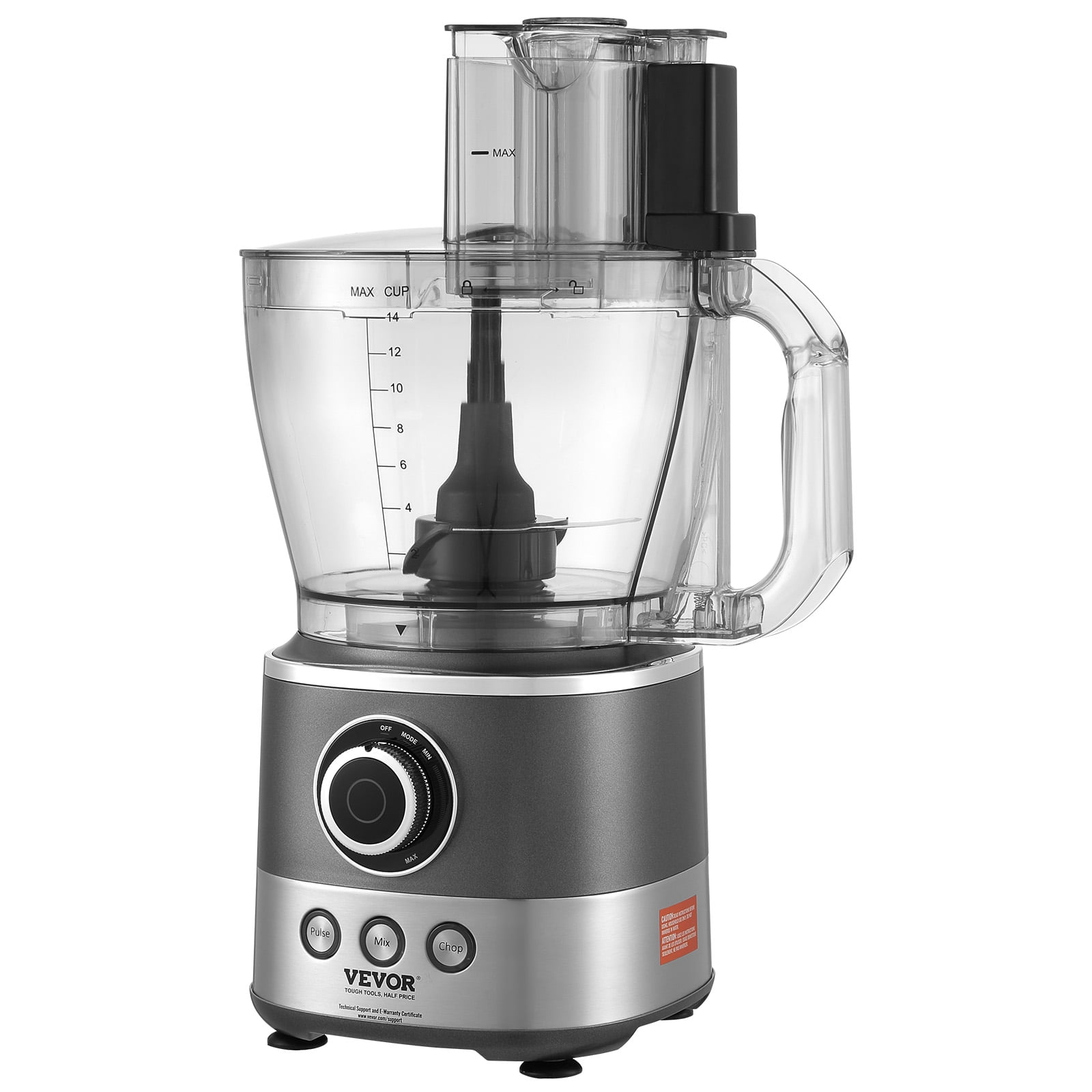 Multi-Functionality: The multifunctional food processor is equipped with 3 stainless steel discs, 1 stainless steel S-shaped meat grinding blade, and 1 S-shaped dough blade, along with a scraper. You can perform various tasks such as chopping, slicing, grinding, and kneading. Easy to Operate: With a 600W motor and multiple speed adjustments, along with a P-pulse function, our vegetable chopper can easily handle ingredients of different hardness, helping you quickly complete meal prep. Large Capacity: Featuring a 14-CUP bowl with markings and a three-in-one widened feed chute that can accommodate more ingredients, This mixer grinder is ideal for large families, satisfying both large and small production needs. Use with Confidence: All the parts that come in contact with food are made of BPA-free food-grade ABS and stainless steel. Moreover, the blades and accessories are detachable, allowing you to easily clean them in the dishwasher. Safe and Durable: The core component, the motor, is enhanced with an automatic reset thermostat and overload protection setting, protecting the blender and food processor to a certain extent and making it more durable.