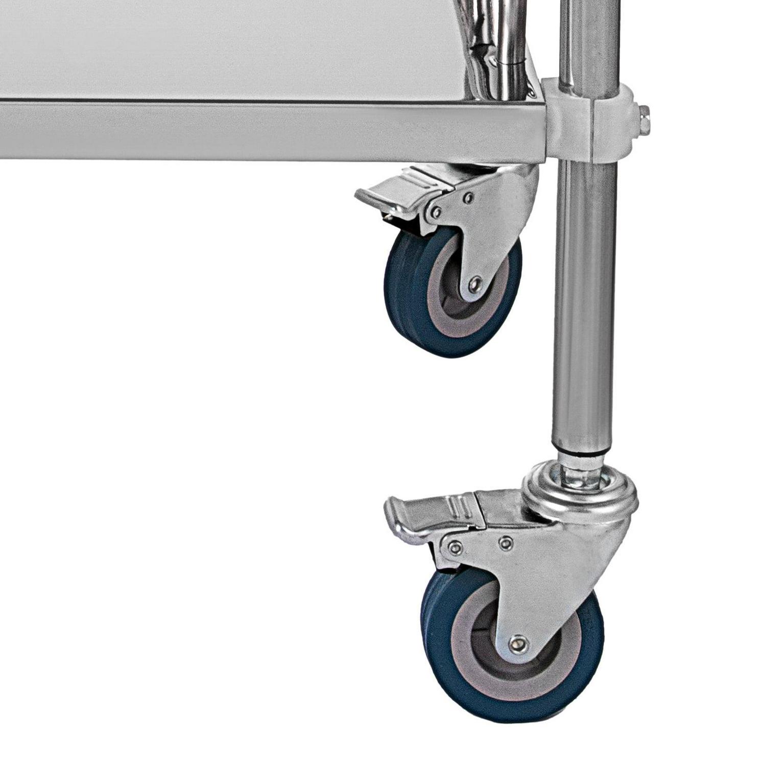 The laboratory trolley is made of thick stainless steel material, is rust-proof and durable, can simplify your daily work, and achieve functionality and convenient operation. The protection rail design prevents the device from falling. The roller car is designed with four 360° rollers, two of which have foot brakes. Easy to move. The trolley is suitable for laboratories, clinics, SPAs, beauty salons, etc.