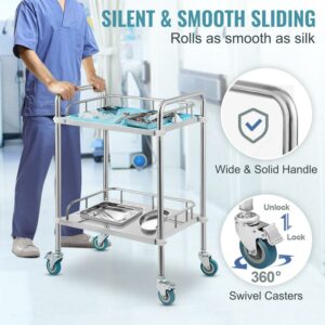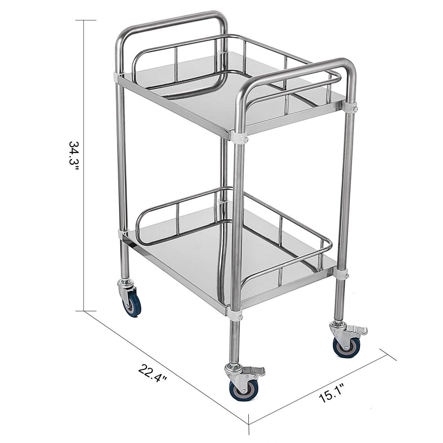 BENTISM 2-Layer Stainless Steel Dental Lab Medical Equipment Cart Trolley