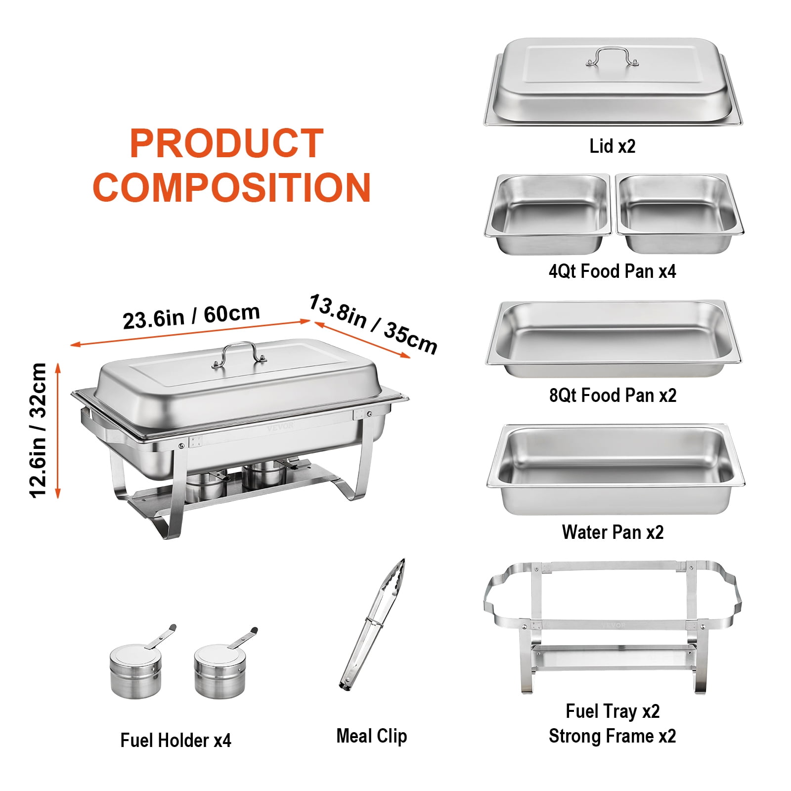 VEVOR 2 Pack 8QT Chafing Dish Buffet Set , Upgrade S210 Stainless Steel Rectangle Catering Food Warmer Chafer w/ 2 Full Size & 4 Half Size Pans Kit Suitable for at least 8 people