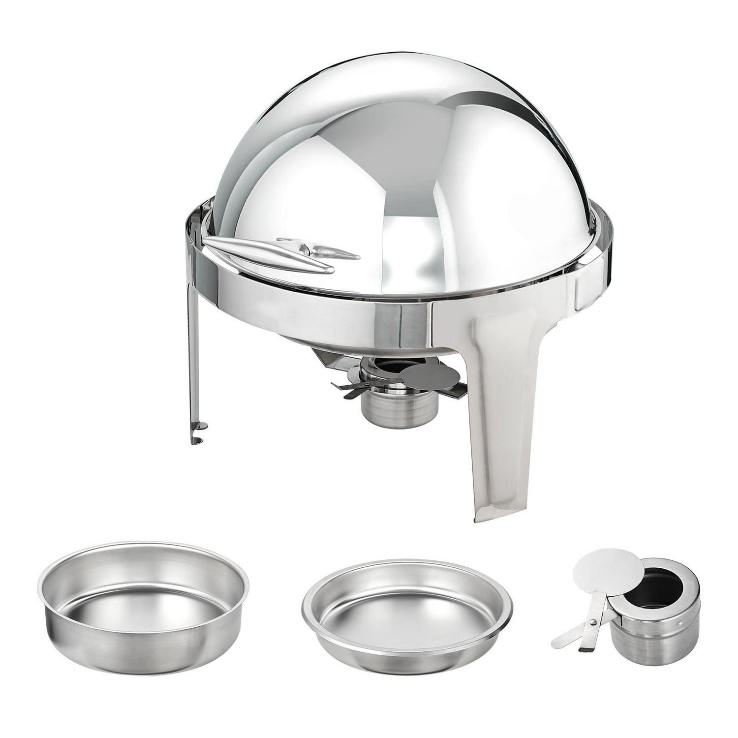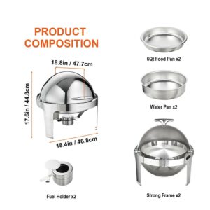 BENTISM 2-Packs Round Roll Top Chafing Dish Buffet Set with Full-Size 6Qt Pan Fuel Holder