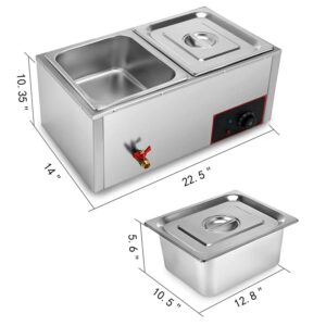BENTISM 2 Pots Electric Food Warmer 22Qt Commercial Stainless Steel Pans