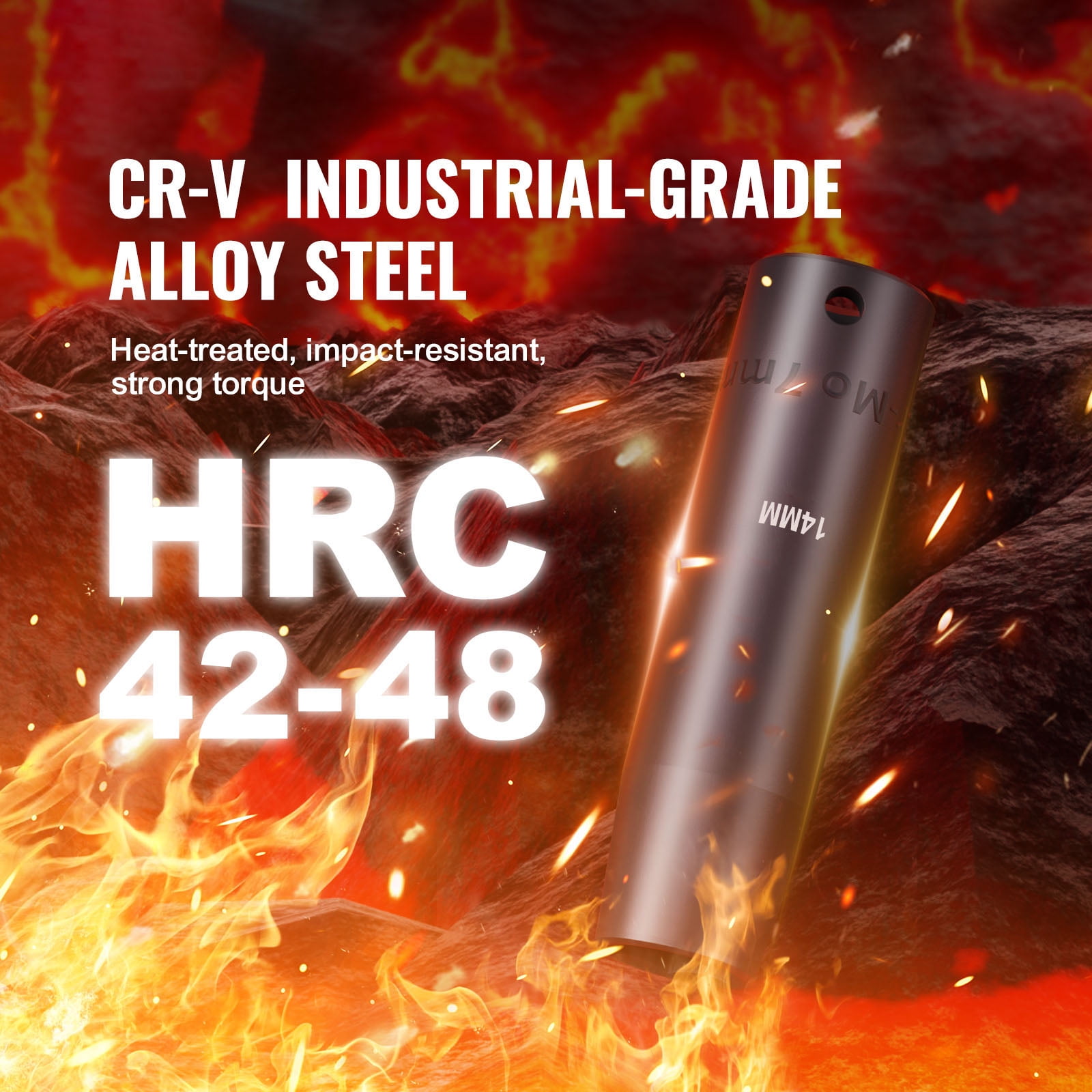 Cr-V Industrial-Grade Alloy Steel: Crafted from premium impact-grade alloy steel, our 3/8 impact socket set with Cr-V industrial-grade alloy steel offers exceptional enhancements in impact resistance and absorption. Through the utilization of vacuum heat treatment, the steel undergoes rapid heating and cooling processes, resulting in a polished and highly durable surface. This makes it well-suited for a wide range of operational environments. High Torque: Distinguished by its hexagonal drive design, which sets it apart from traditional designs lacking rounded corners, this socket tool set significantly reduces pressure exerted on fasteners during impact. As a result, it minimizes wear and effectively prevents bolt rounding and stripping. Easy-to-Read Size Markings: The size markings on these 48pcs impact driver socket set are meticulously laser-etched and rolled, ensuring effortless identification of socket sizes even in low light conditions. Convenient Storage & Transportation: The set is accompanied by a moderate-weight metal toolbox, providing convenient portability. The toolbox facilitates organized storage of the tools after use, eliminating the risk of unnecessary scattering or loss. Abundant Components: This comprehensive set includes an array of components, such as deep and standard sockets 8mm, 9mm, 10mm, 11mm, 12mm, 13mm, 14mm, 15mm, 16mm, 17mm, 18mm, 19mm, 20mm, 21mm, 22mm, 5/16″, 3/8″, 7/16″, 1/2″, 9/16″, 5/8″, 11/16″, 3/4″. Other components include extension bars in lengths of 3″and 6″, 3/8″ universal adapter, and 1/2″F x 3/8″M adapter.