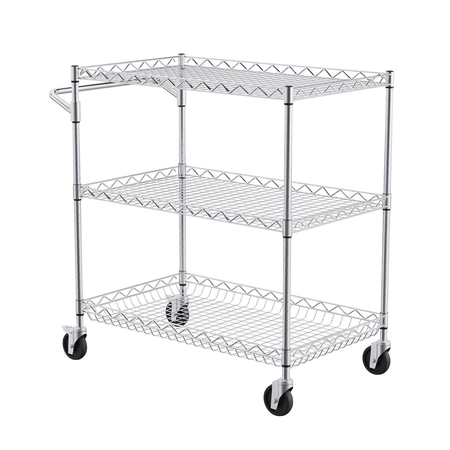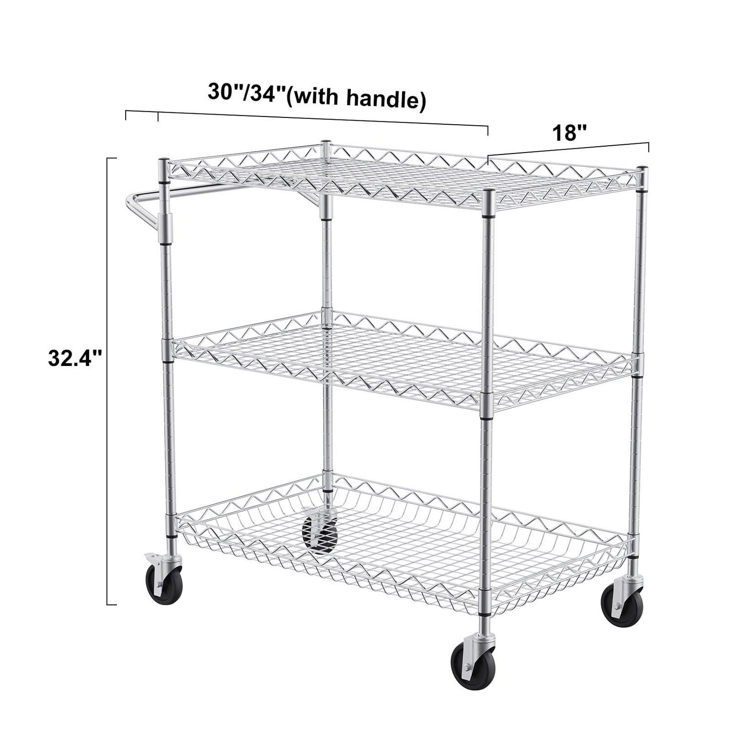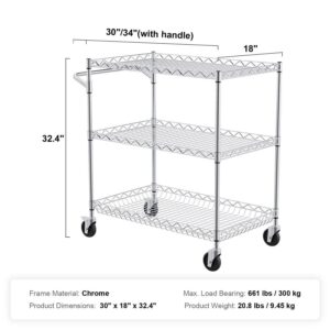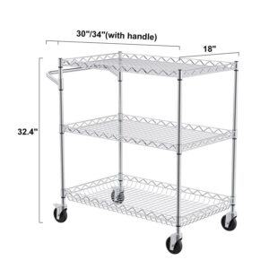 BENTISM 3-Tier Utility Cart Rolling Cart on Wheels 30 x18 x32.4 661 lbs 6 Hooks